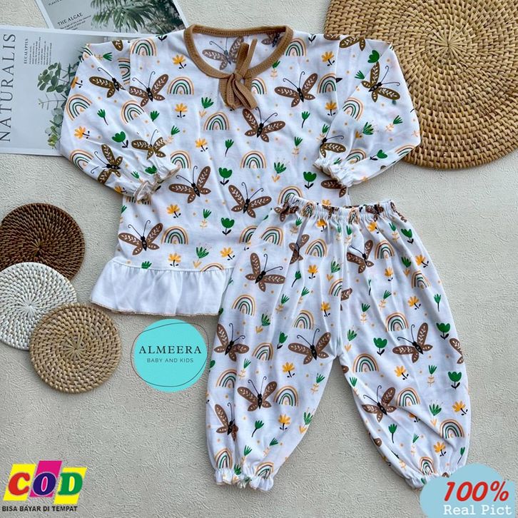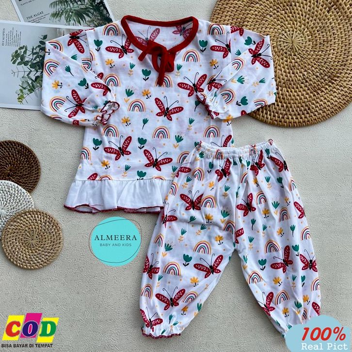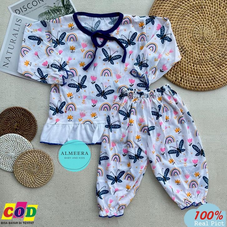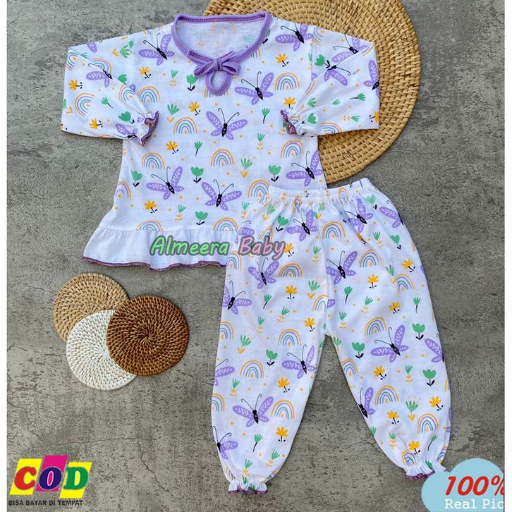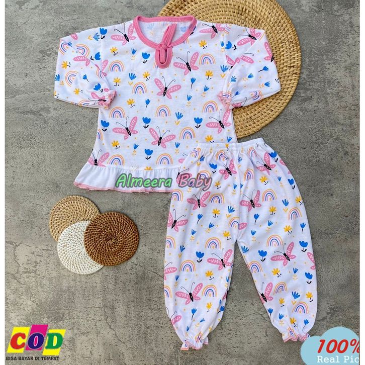 Setelan Baju Piyama Bayi Perempuan Dress Bayi Motif Kupu Kupu Usia 3-12 Bulan