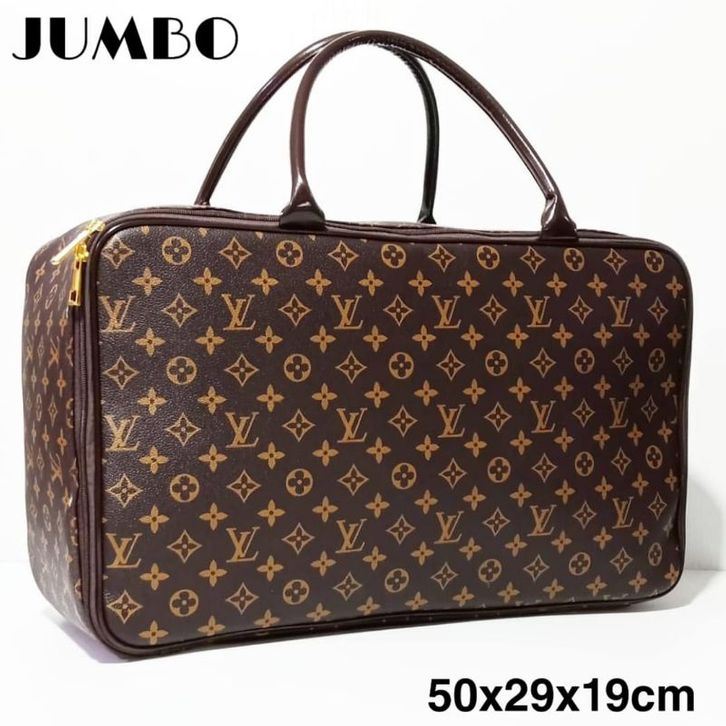 TRAVEL BAG JUMBO PREMIUM TAS PAKAIAN WANITA BUNGA COKLAT