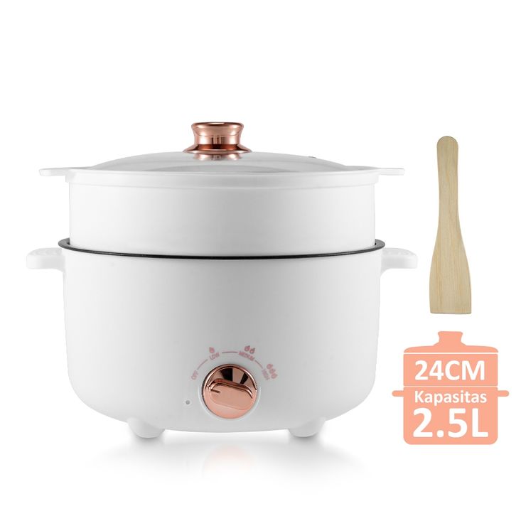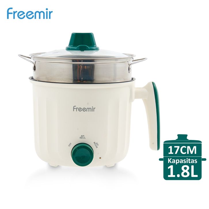 Freemir 1.2L Panci Listrik Fry Pan Electric 2in1 Pengukus Panci Penggorengan Keramik Elektrik Free Steamer