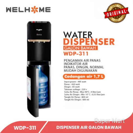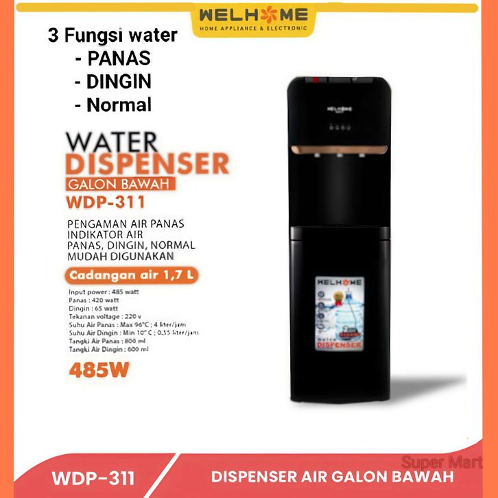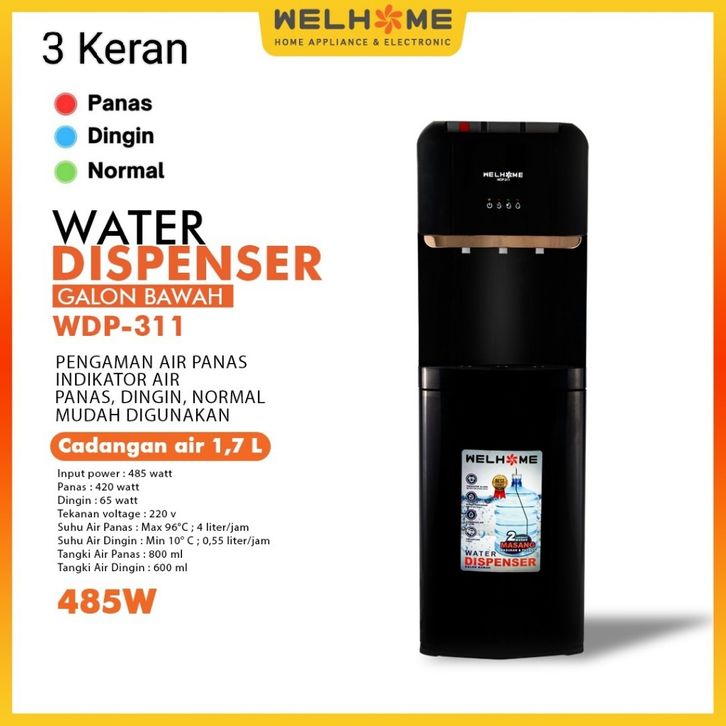 Dispenser Galon Bawah Welhome Water WDP - 311 3Kran Panas Dingin Normal Dispenser Wellhome