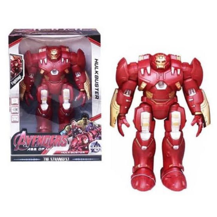 MAINAN ANAK ROBOT HULKBUSTER MERAH / Mainan Anak Robot Elektrik Walking Iron Hero Man Buster Superhero Jalan Lampu