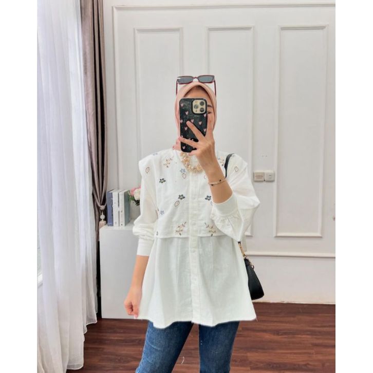 Atasan Wanita Kekinian Baju Kemeja Blouse Kantoran Terbaru Korean Blouse Atasan Remaja Wanita Linen Muslim Korean Style