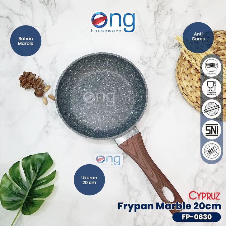 Fry Pan Marble Sauce Pan Fry Wok Panci Tutup Kaca Teflon Wajan Penggorengan Anti Lengket Keramik Gagang Kayu Anti Slip