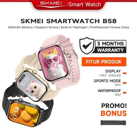 Jam Tangan Wanita Smartwatch SKMEI B58 1.95inci AMOLED Touch Screen Dengan Built-in Flashlight/ 100+ Sports Fitness Trac