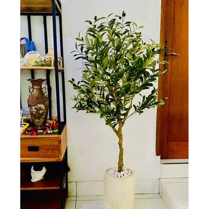 Pohon daun Olive Palsu daun Zaitun Artificial lengkap pot Kualitas Premium