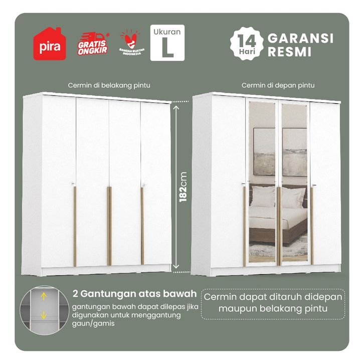 PIRA LEMARI PAKAIAN/PIRA METROPOLIS - YONA AVA 4P LEMARI PAKAIAN 4 PINTU/LEMARI PAKAIAN KAYU/LEMARI 4 PINTU GRATIS ONGKI