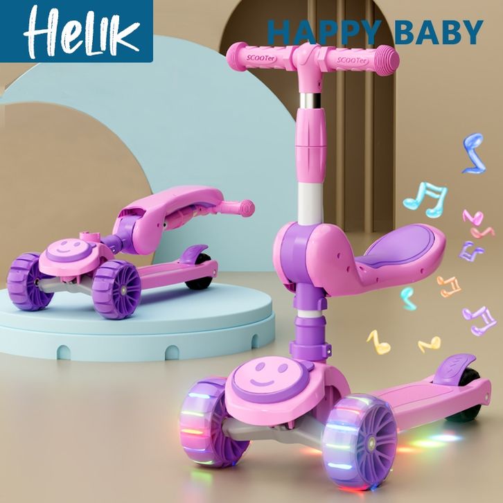 Skuter Anak Roda 3 Mainan Scooter Otoped Bisa Lipat dengan Lampu Musik