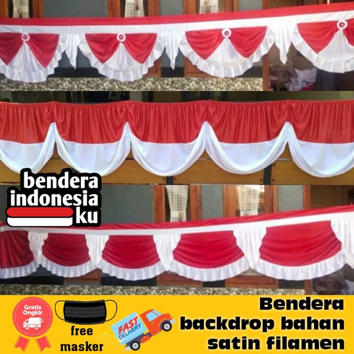 TANPA DP bendera merah putih rumbai polos panjang bendera panggung bendera 5 dan 10 gelombang TERLARIS