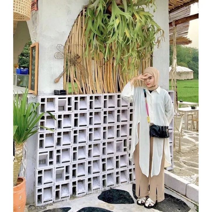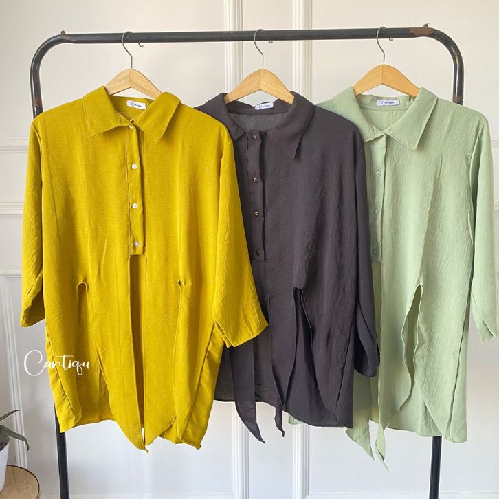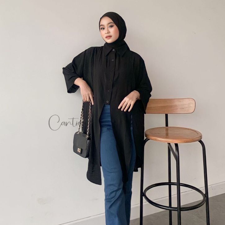 CANTIQU - BLOUSE WANITA RIRA TUNIK CRINCLE AIRFLOW KANCING AKTIF