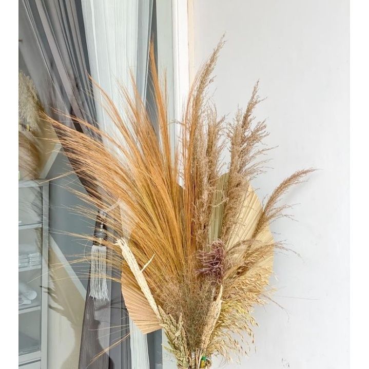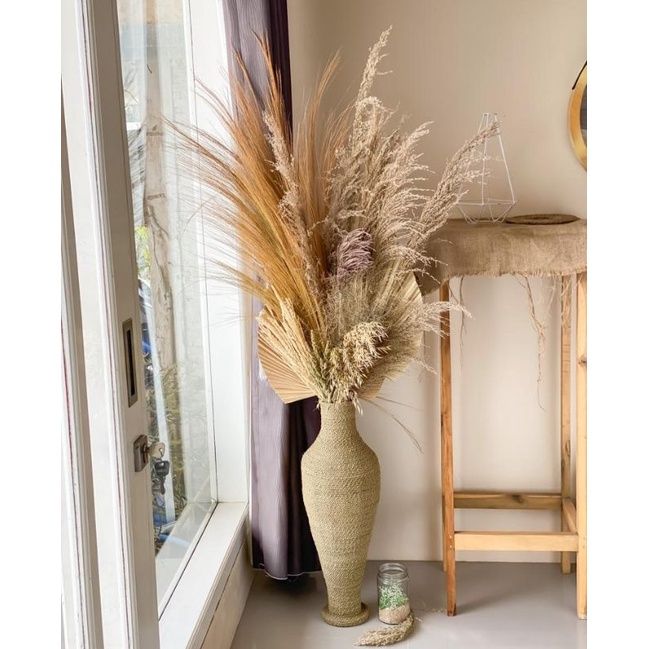 BUNGA HIAS SUDUT RUANGAN PAKET BUNGA KERING + POT MENDONG 70CM VAS GUCI BUNGA HIAS BUNGA SUDUT BUNGA HIASAN RUANG TAMU