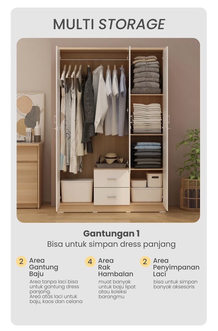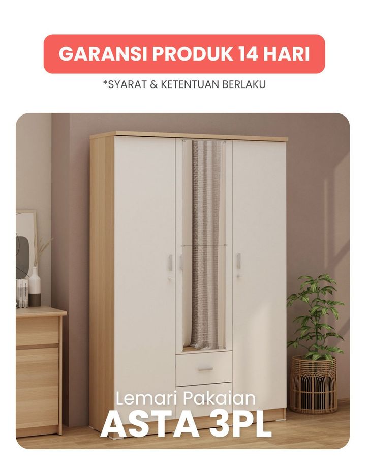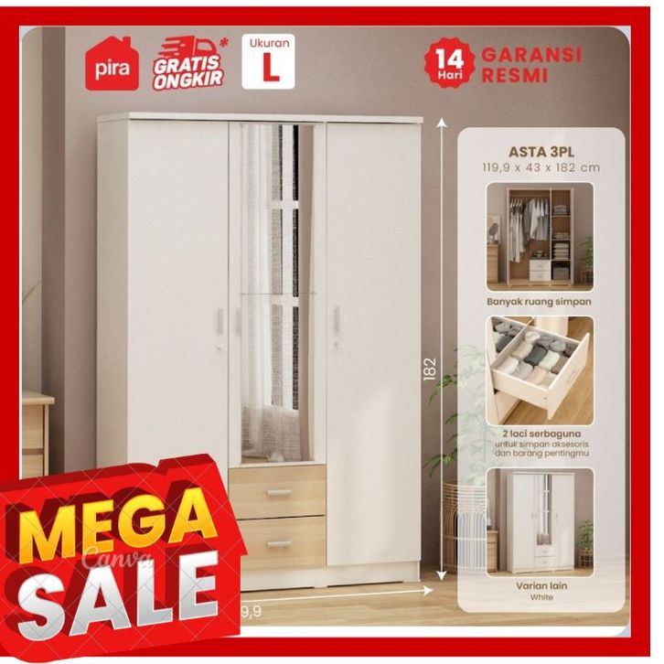 [Mall] Lemari Pakaian Pira Metropolis OX - Asta 3PL Lemari minimalis 3 Pintu estetic awet tahan lama anti rayap
