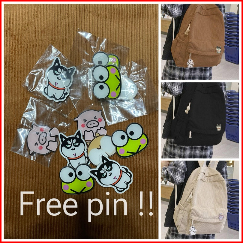 Carnbag - Backpack Corduroy Free Pin Tas Ransel Corduroy Pria Wanita Freepin