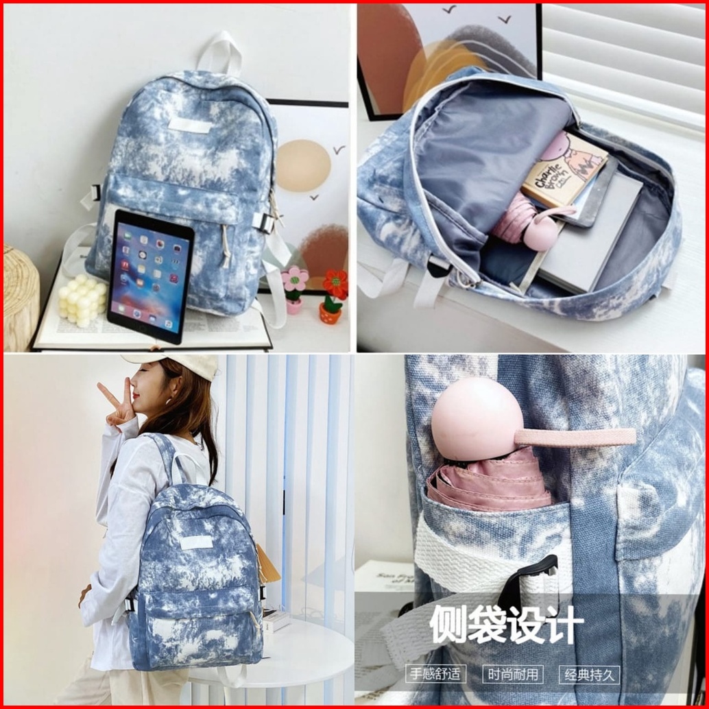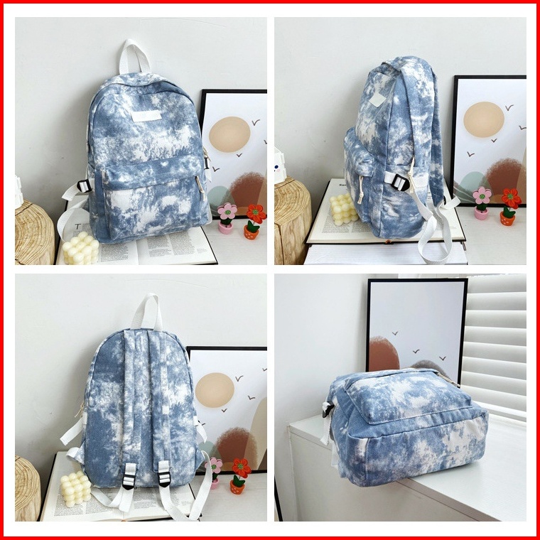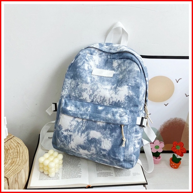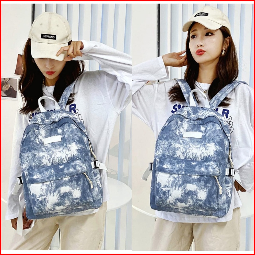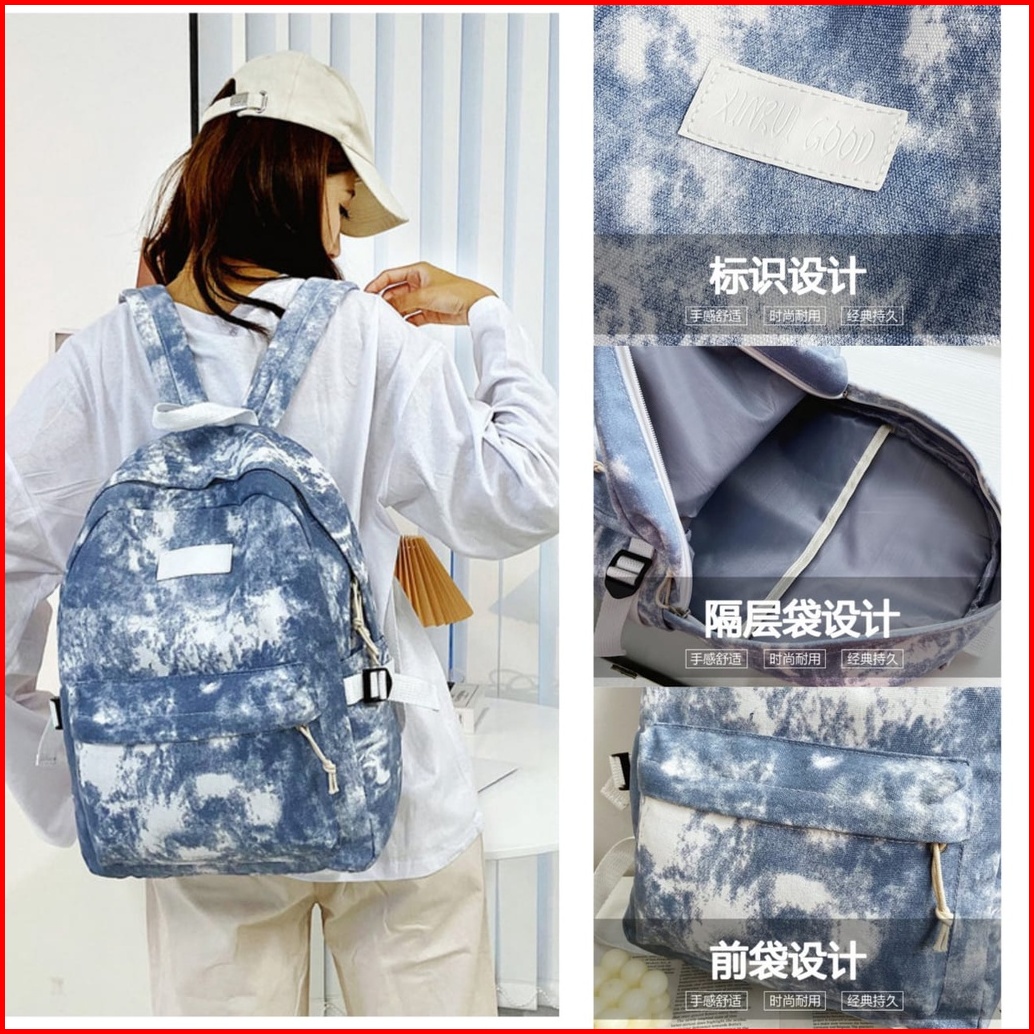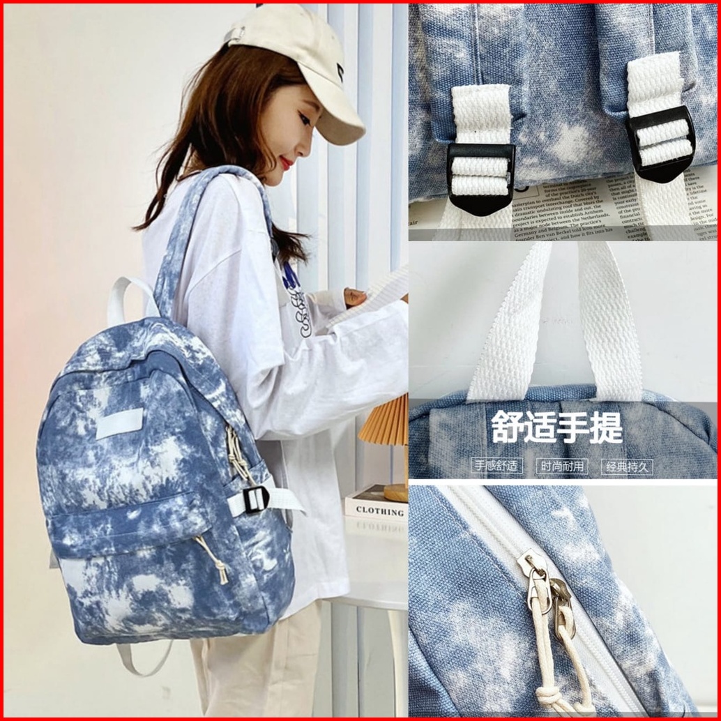 Tas Ransel Wanita Kanvas Tie Dye Zenin Ta449b2 Backpack Remaja Korea Kekinian Cewek Gendong Punggung Besar Sekolah Kulia