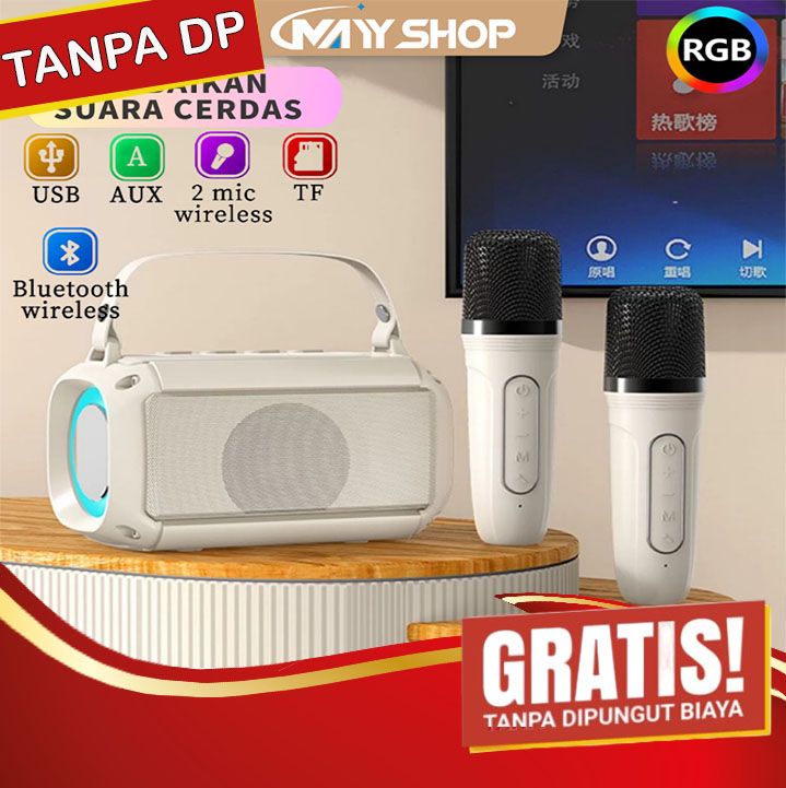 BARU 2MIC Speaker karaoke bluetooth 1 SET RGB Wireless 2 Warna (Dapat terhubung ke HP/TV,Komputer) Garansi 1 tahun