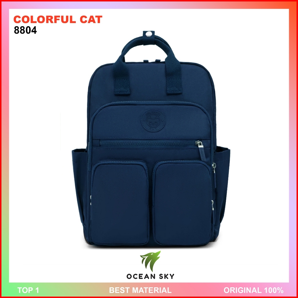Tas Ransel Colorful Cat 8804 Original Import Nilon Waterproof Ransel Laptop 15in