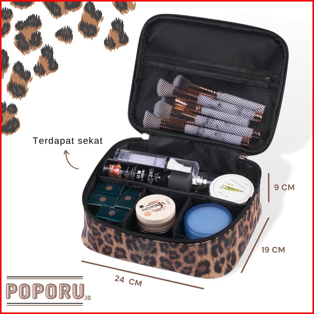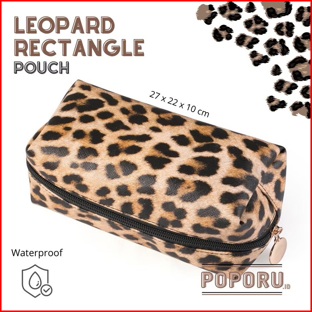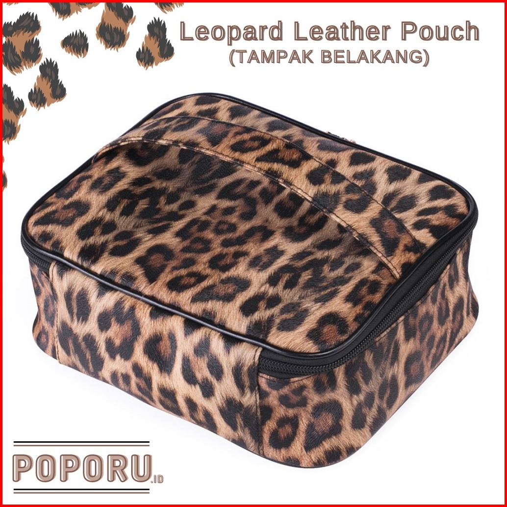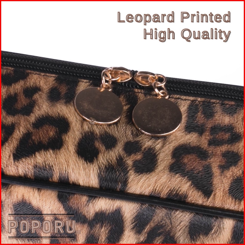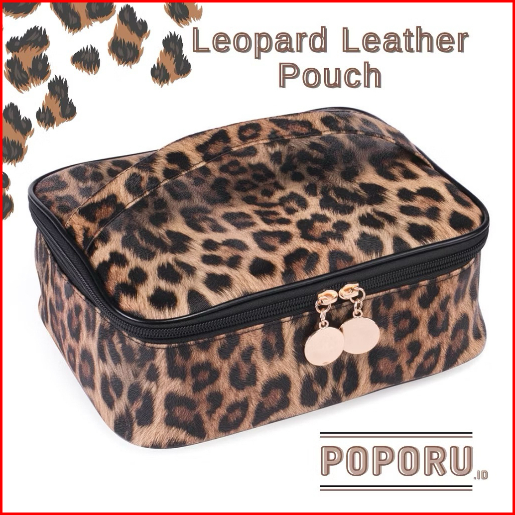 Poporu Leopard Leather Pouch - Cosmetics Bag Organizer For Make Up - Tas Tempat Kosmetik Macan