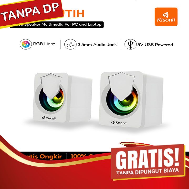 BARU KISONLI Gaming Speaker Komputer/Laptop L-1030 LED RGB Light With Switch Volume Control - Putih