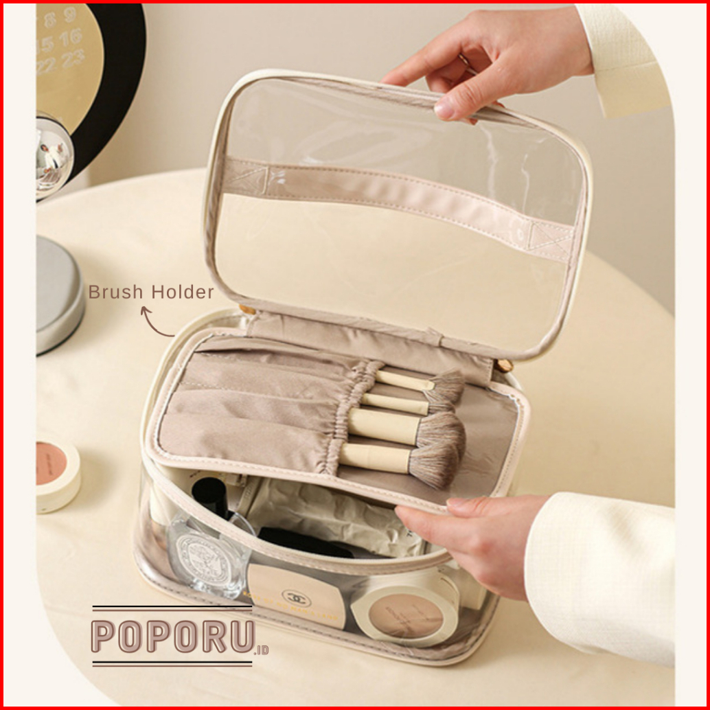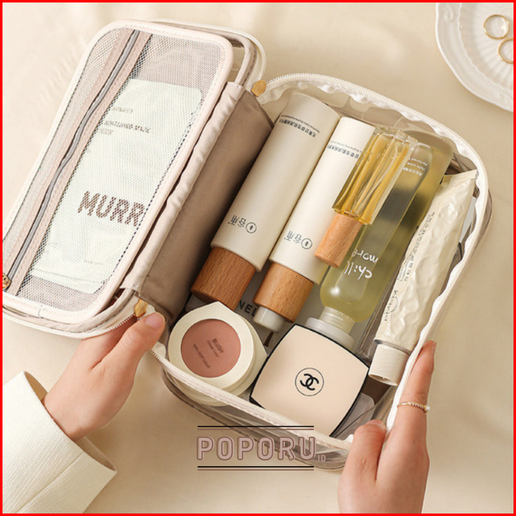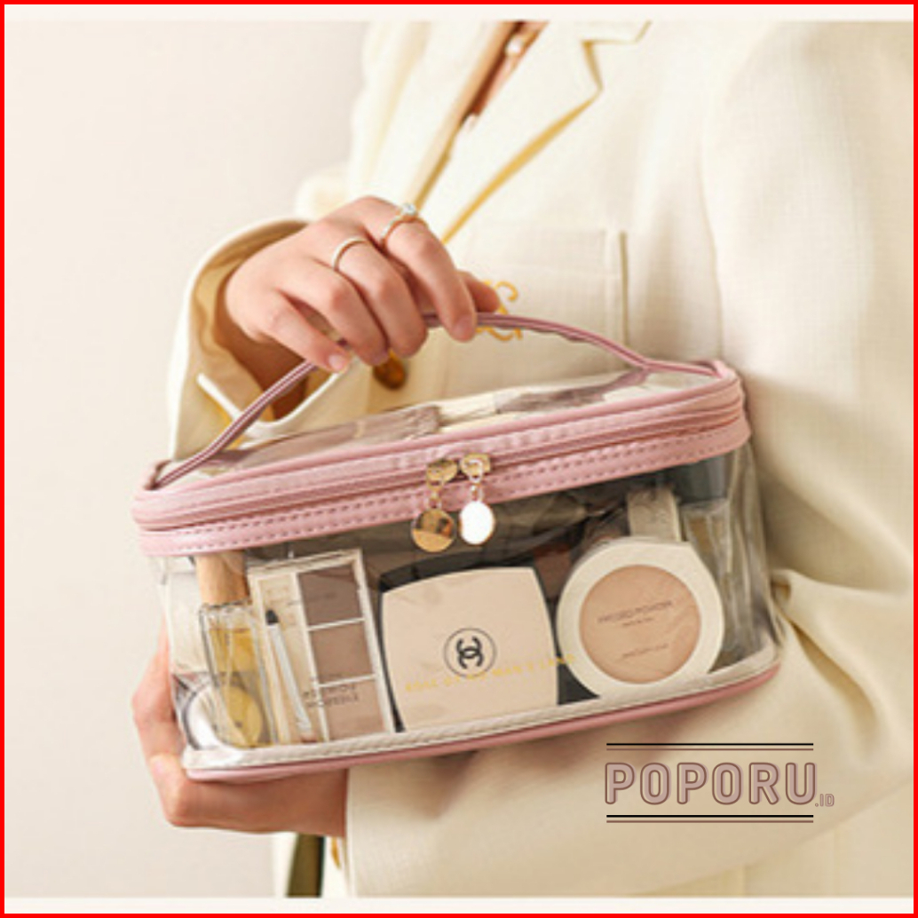 Poporu Tyra Transparent Pouch - Make Up Organizer Transparan Tas Tempat Makeup - Bening Kosmetik