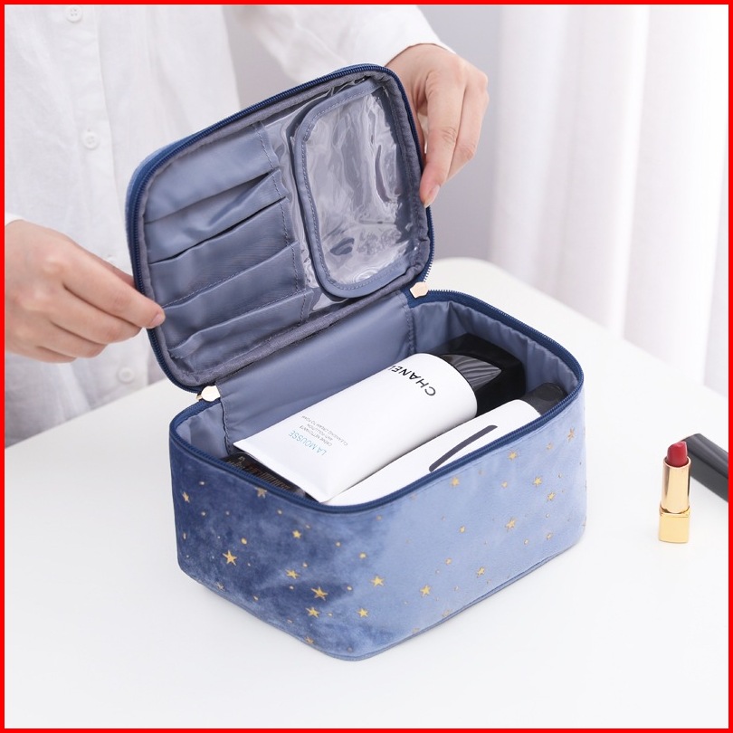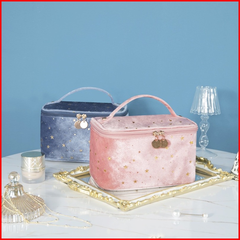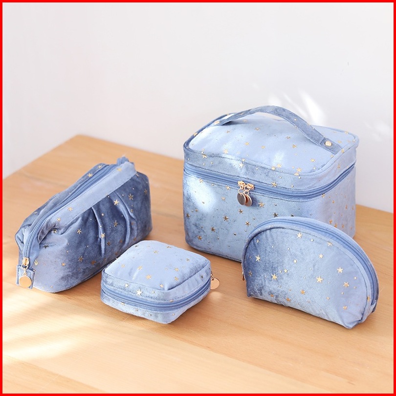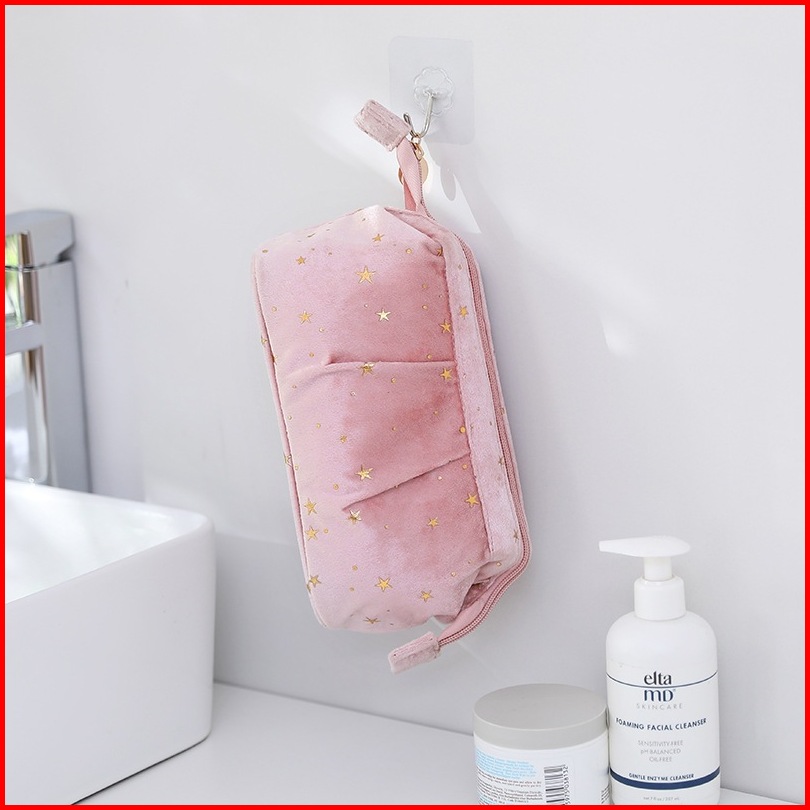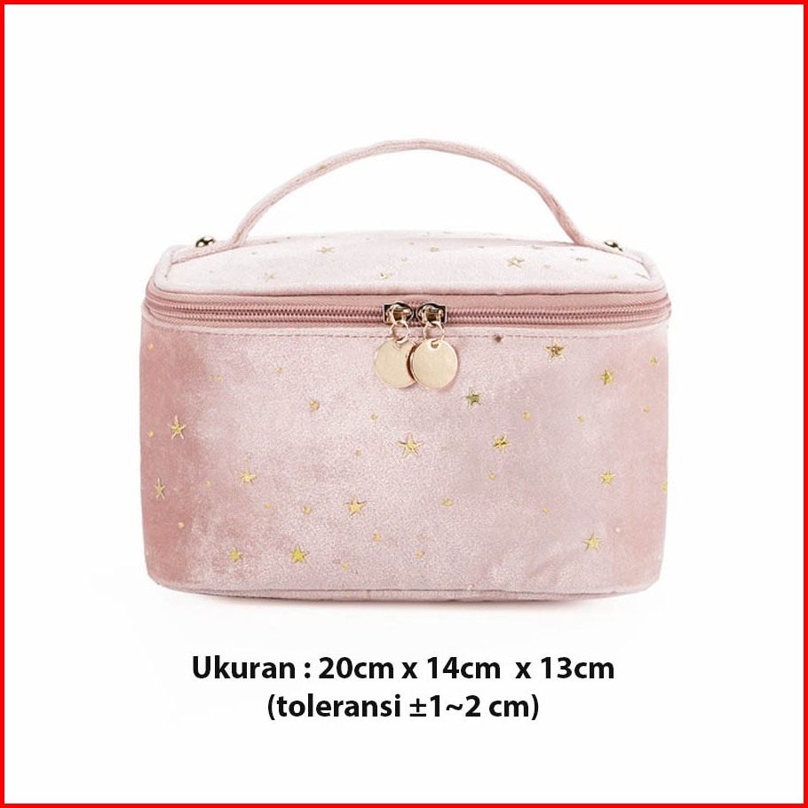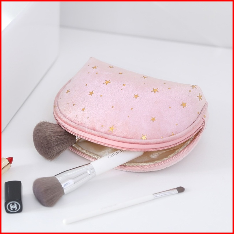Pouch Travel Starry Bahan Flannel Warna Pastel Shell Bag Organizer