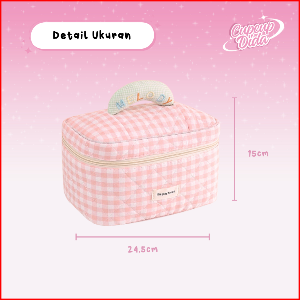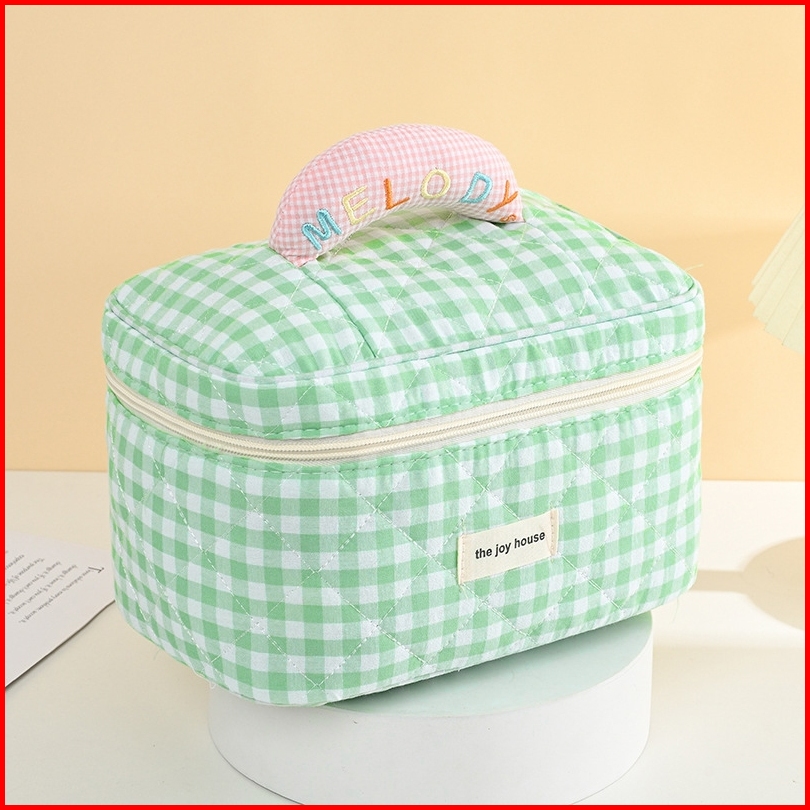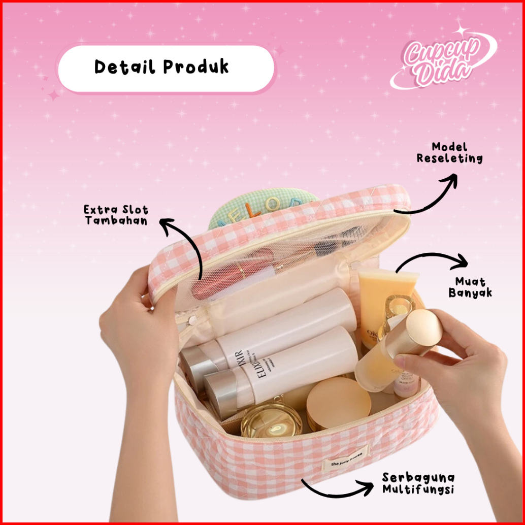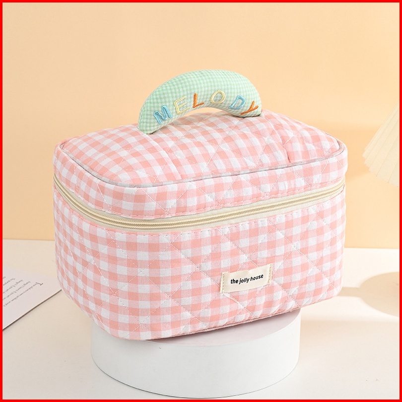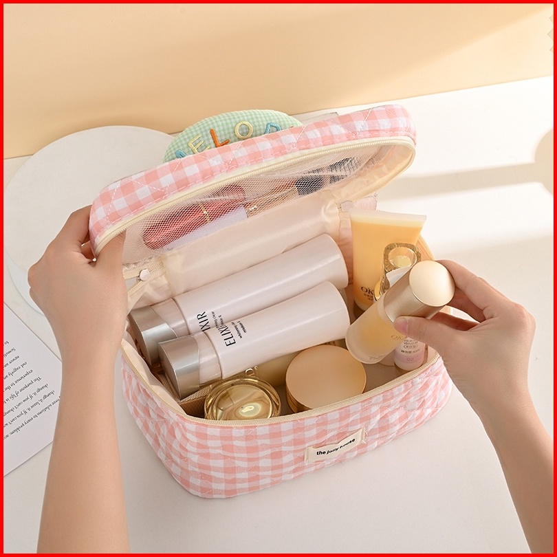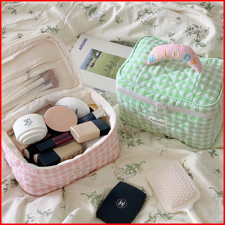 Pouch Kosmetik Aesthetic Cute Plaid Pastel Multi Fungsi Tas Traveling Bag Organizer
