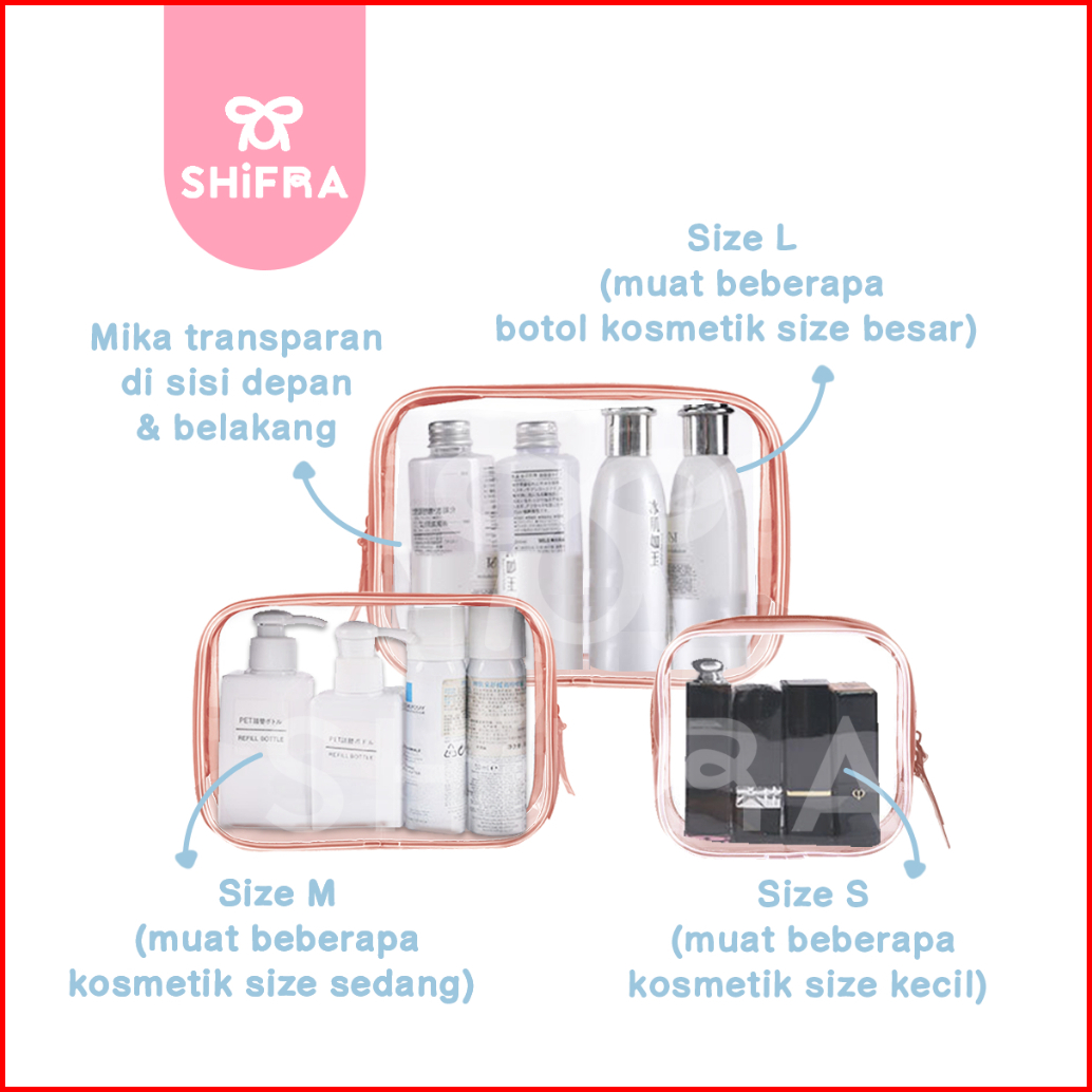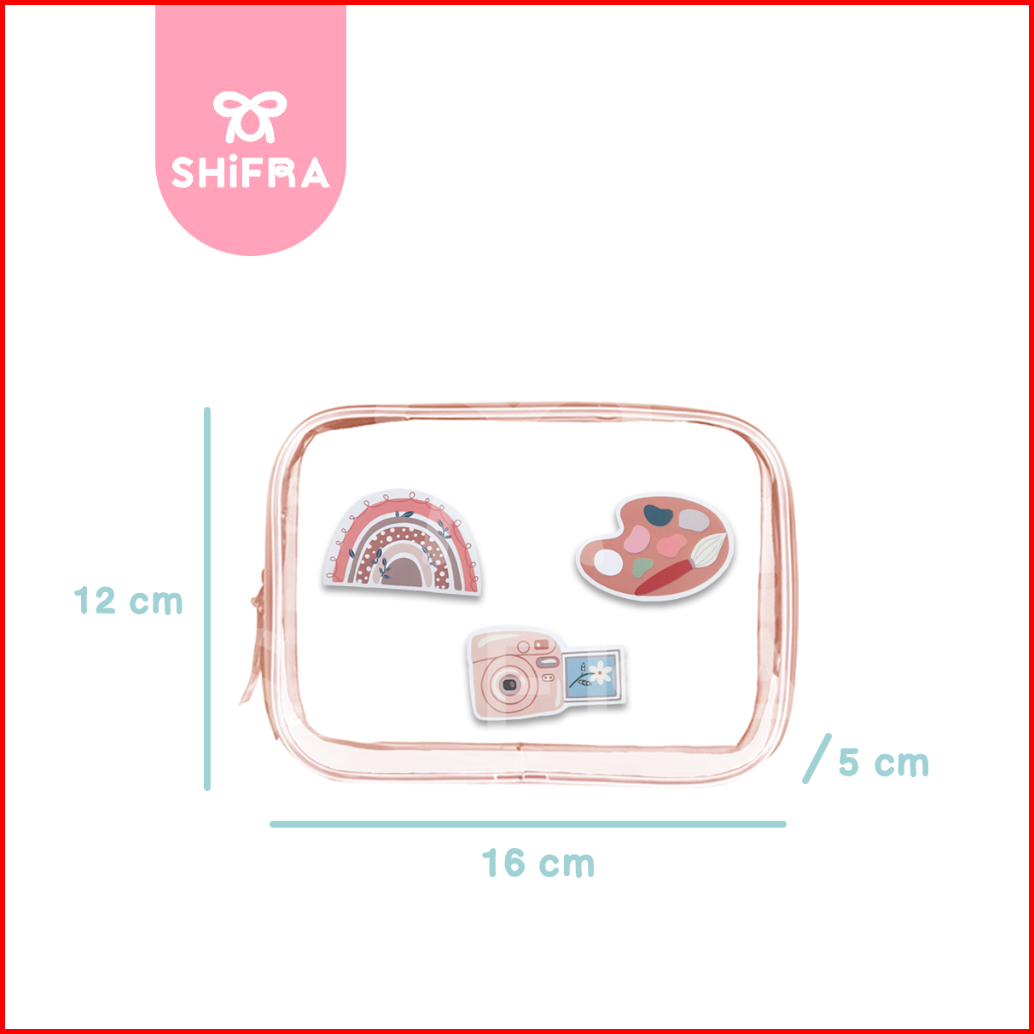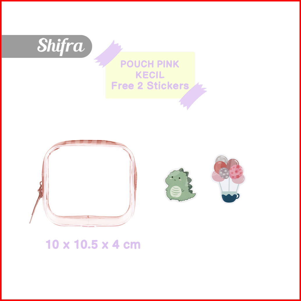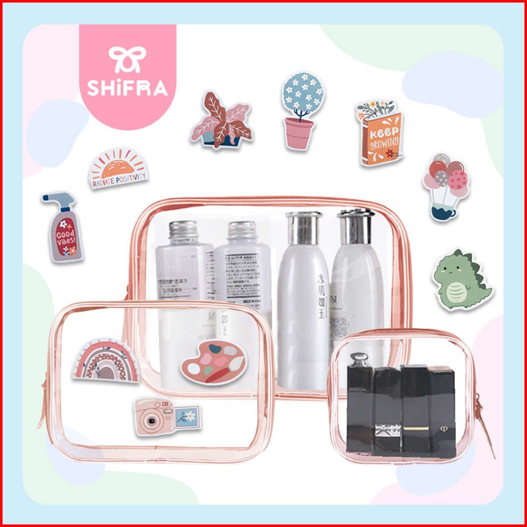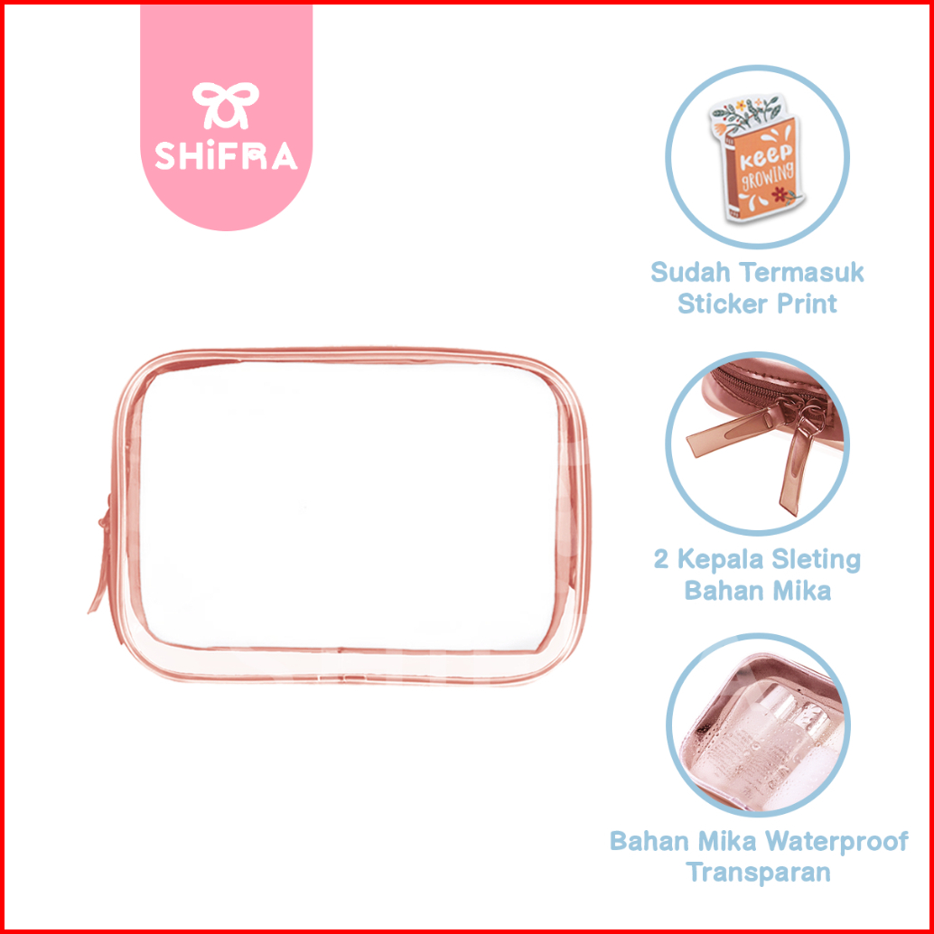 Shifra Pouch Tempat Kosmetik Mika Small Medium Large Pink Dan Black Free Stickers