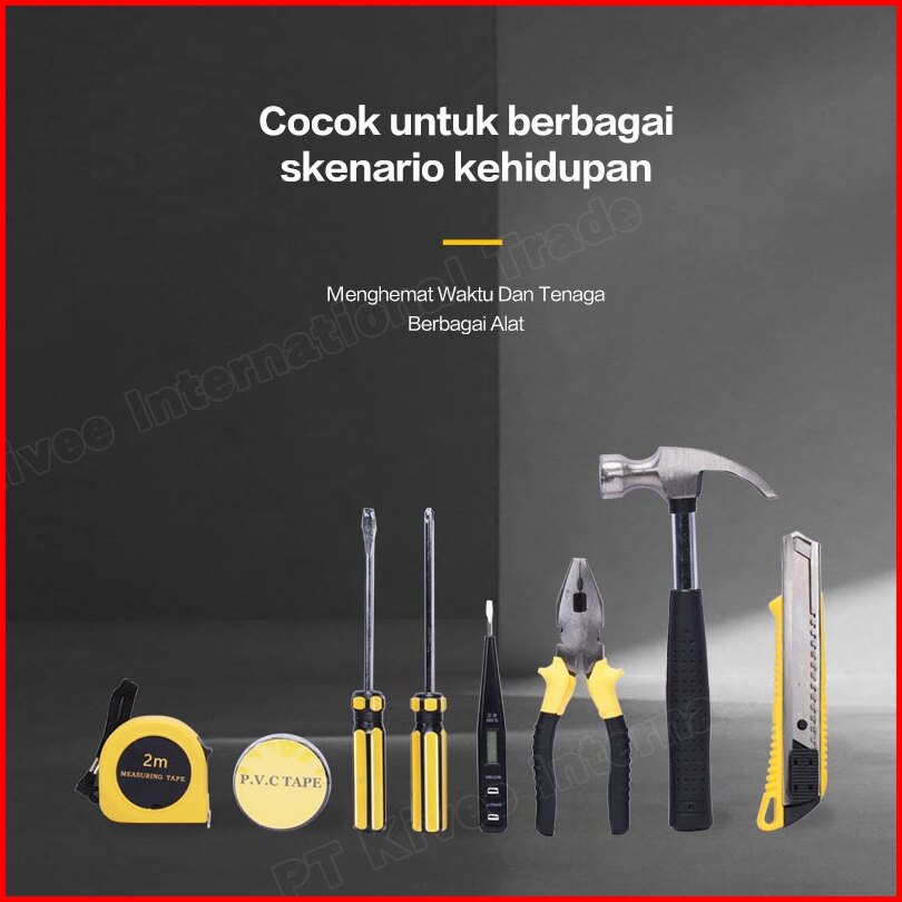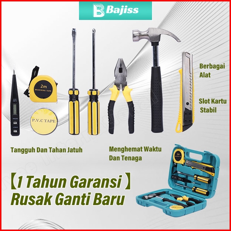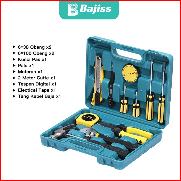 Bajiss Alat Set Perkakas Tang Palu Obeng Cutter Tester Listrik Meteran Tool Set 11 In 1