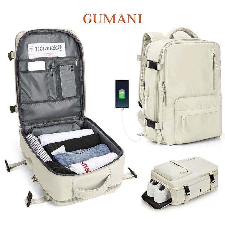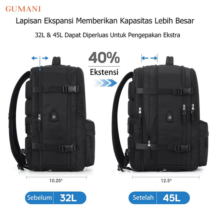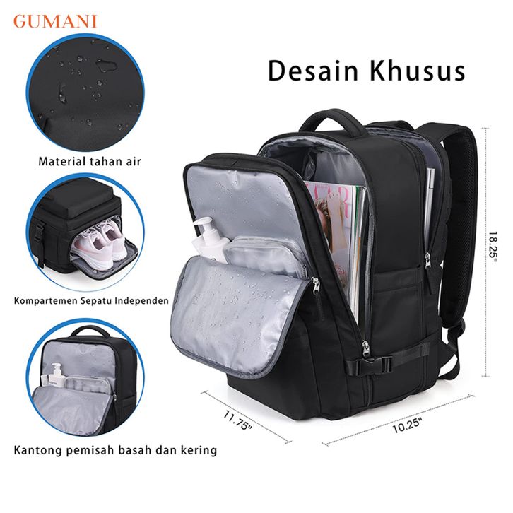 Tas Ransel Traveling Wanita/Pria GUMANI Multifungsi Kapasitas Besar Dengan Ruang Sepatu Terpisah 45L