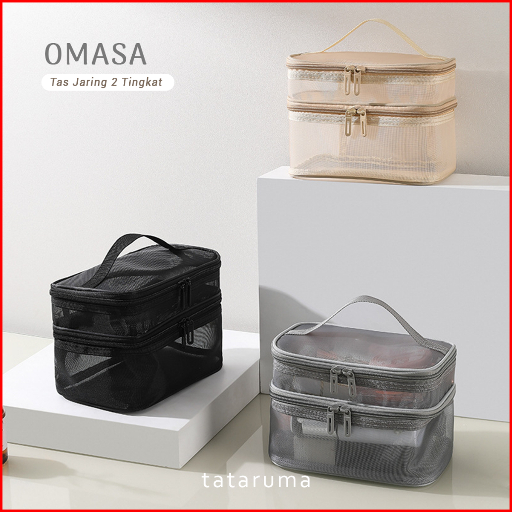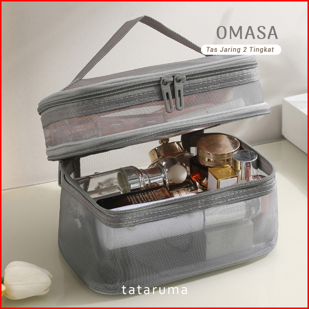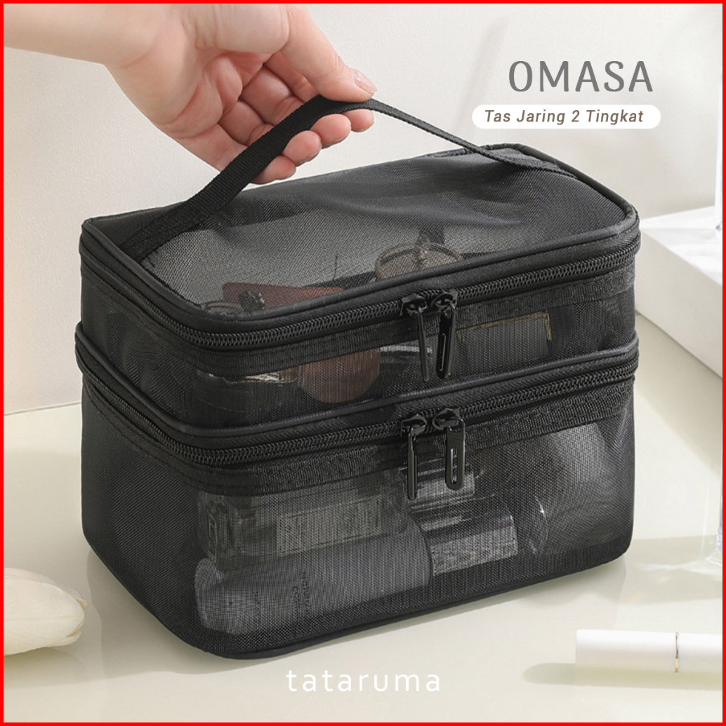 Tataruma Omasa - Tas Jaring 2 Tingkat Pouch Make Up Kosmetik Skincare Travel Organizer