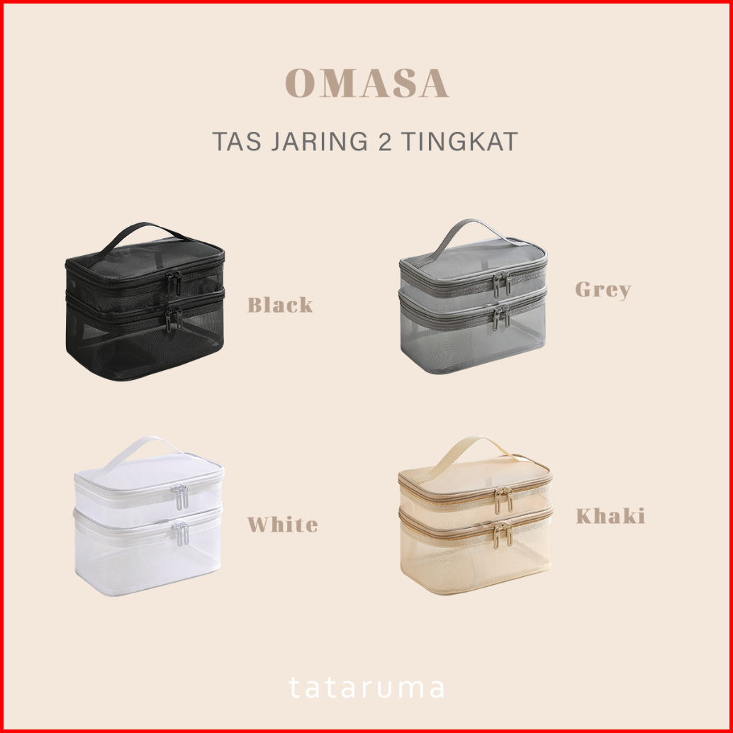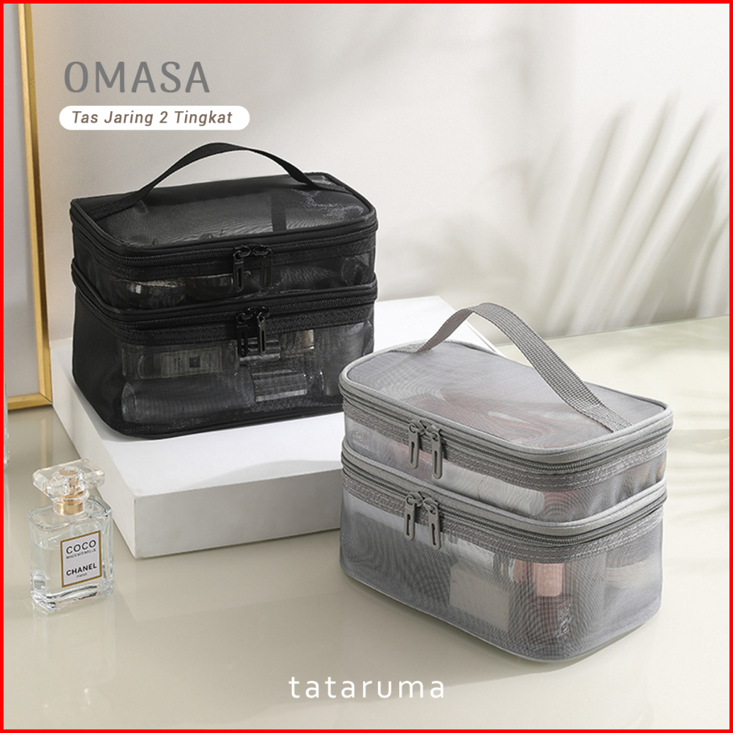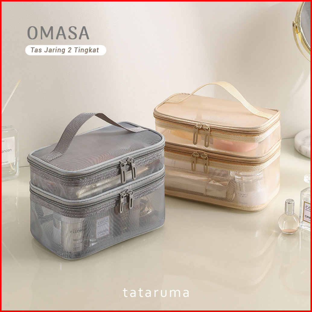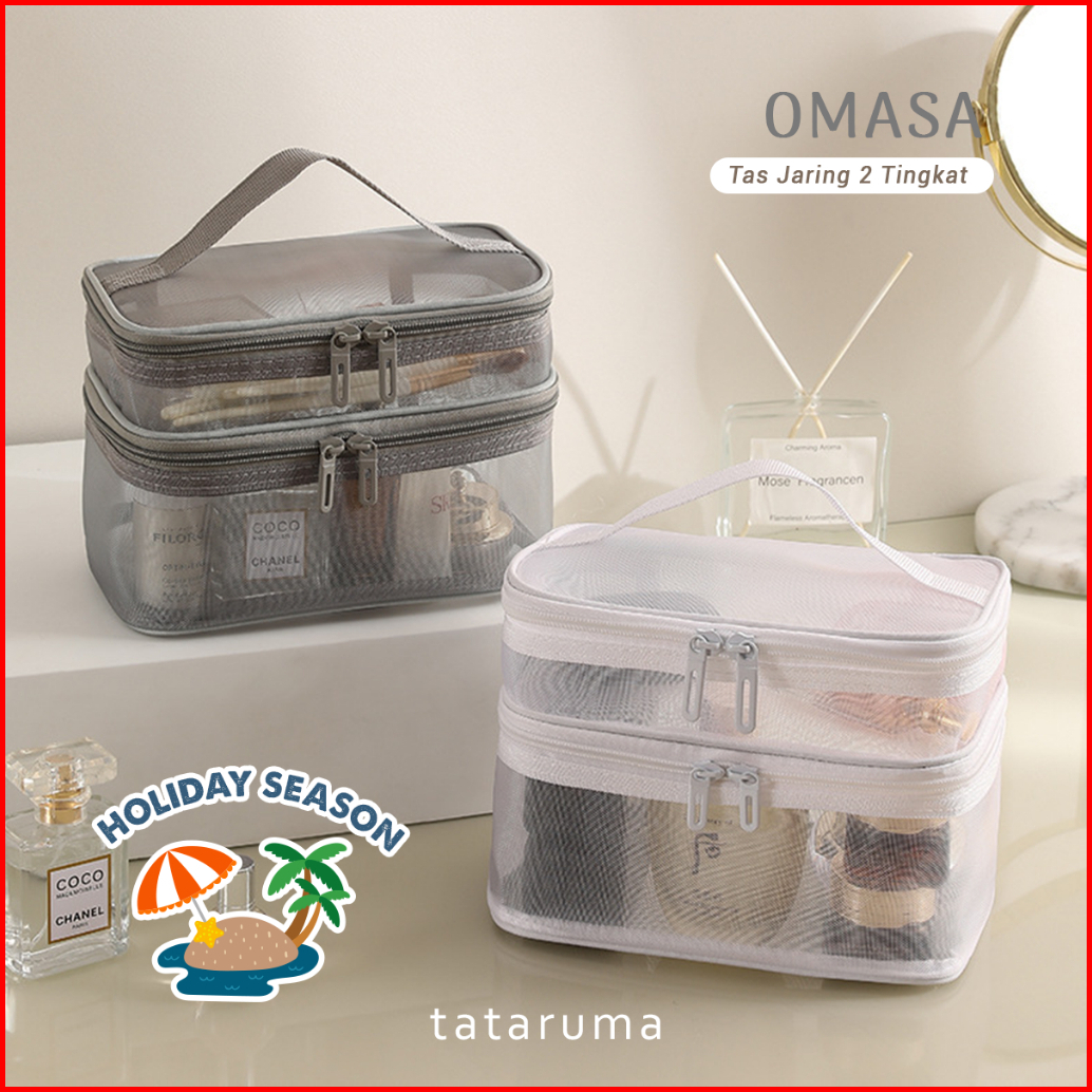 Tataruma Omasa - Tas Jaring 2 Tingkat Pouch Make Up Kosmetik Skincare Travel Organizer