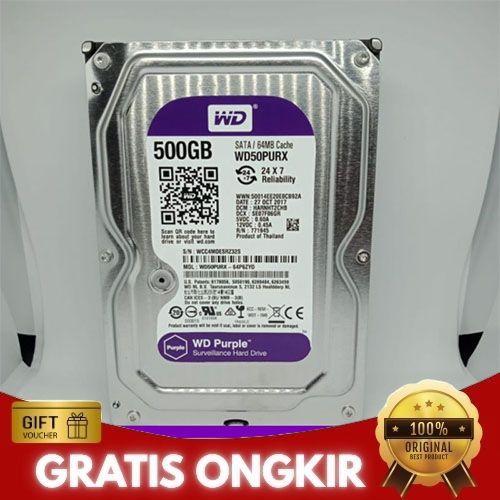 [Mall] HARDISK 500GB WD PURPLE SATA 3,5" -HDD CCTV DVR Barang New 0 Days