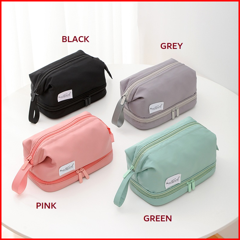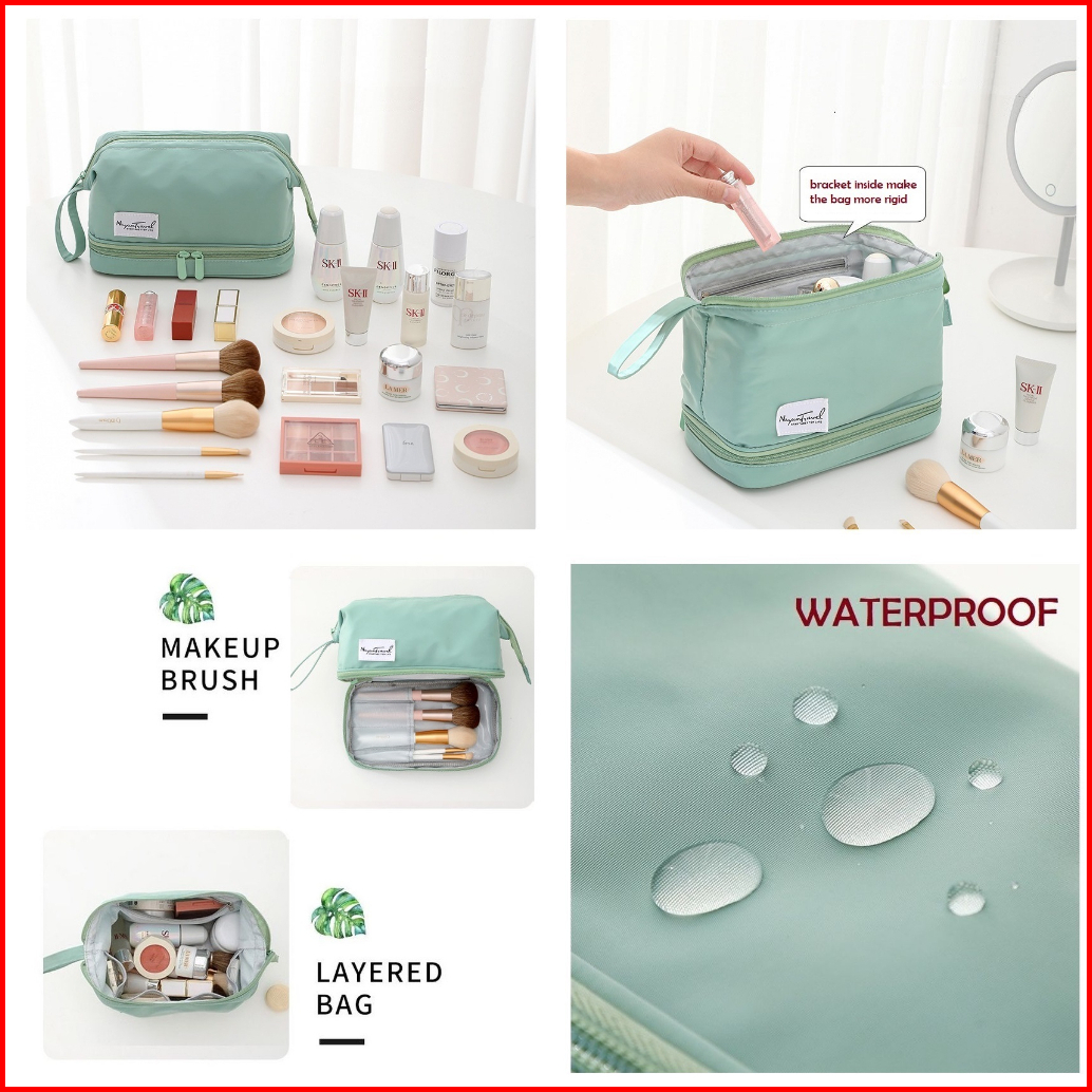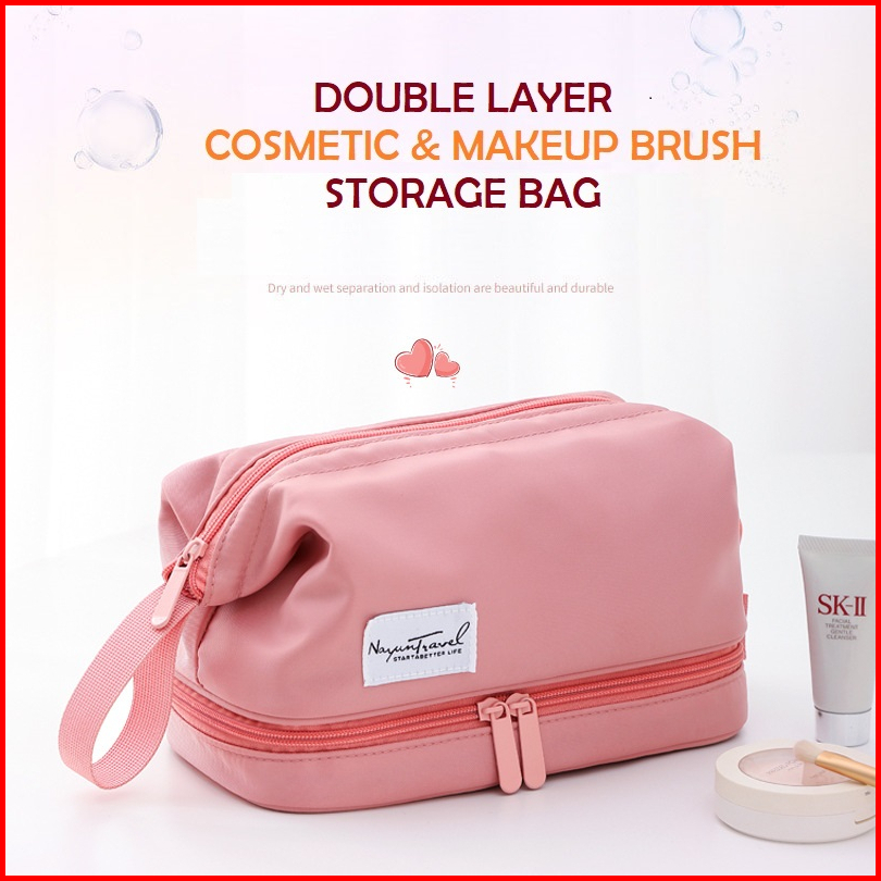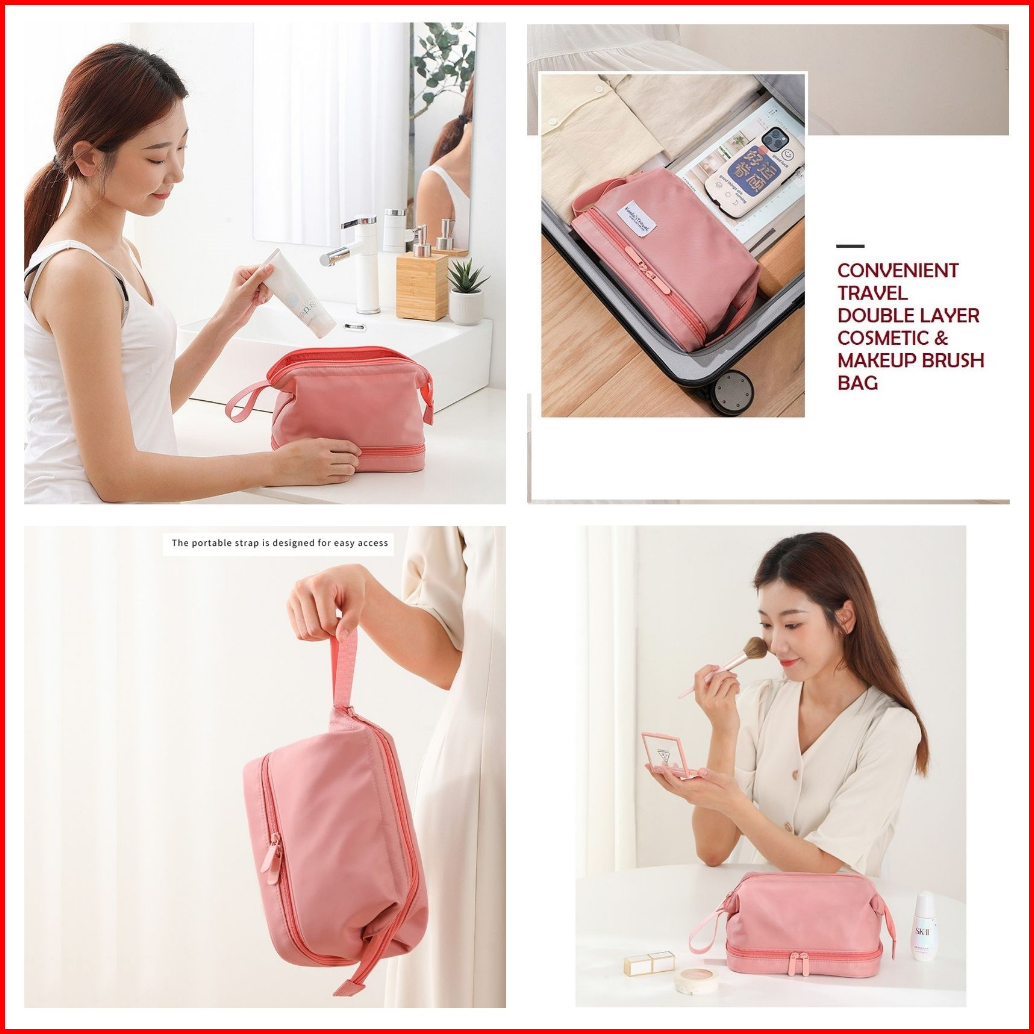 Korean Double Layer Cosmetic Makeup Brush Travel Bag Tas Kosmetik Dan Kuas Pensil Alis