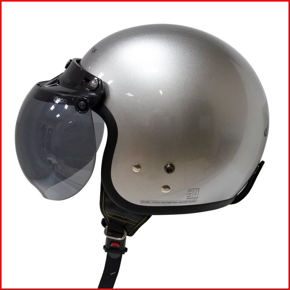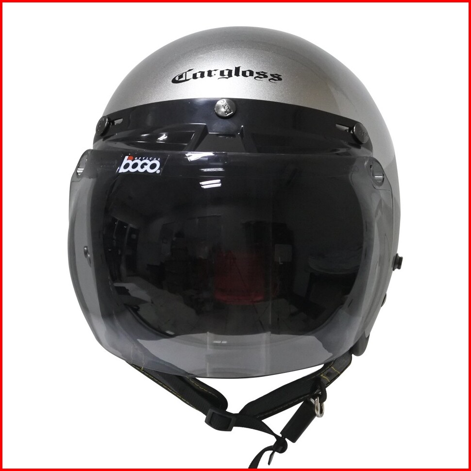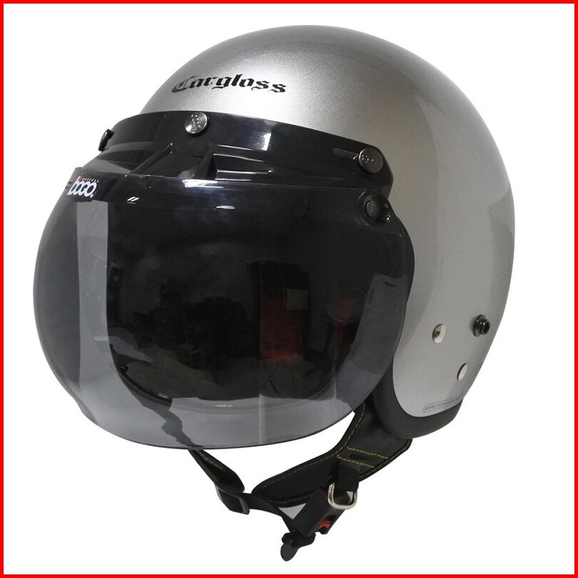 Cargloss Cfm Retro Visor Cembung Smoke Helm Half Face - Silver Met Gloss