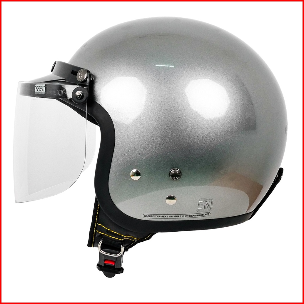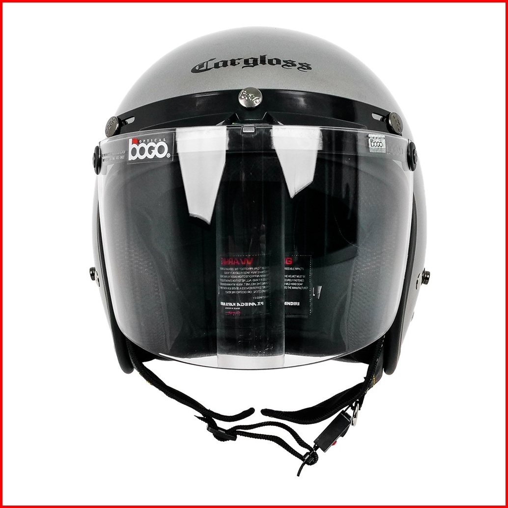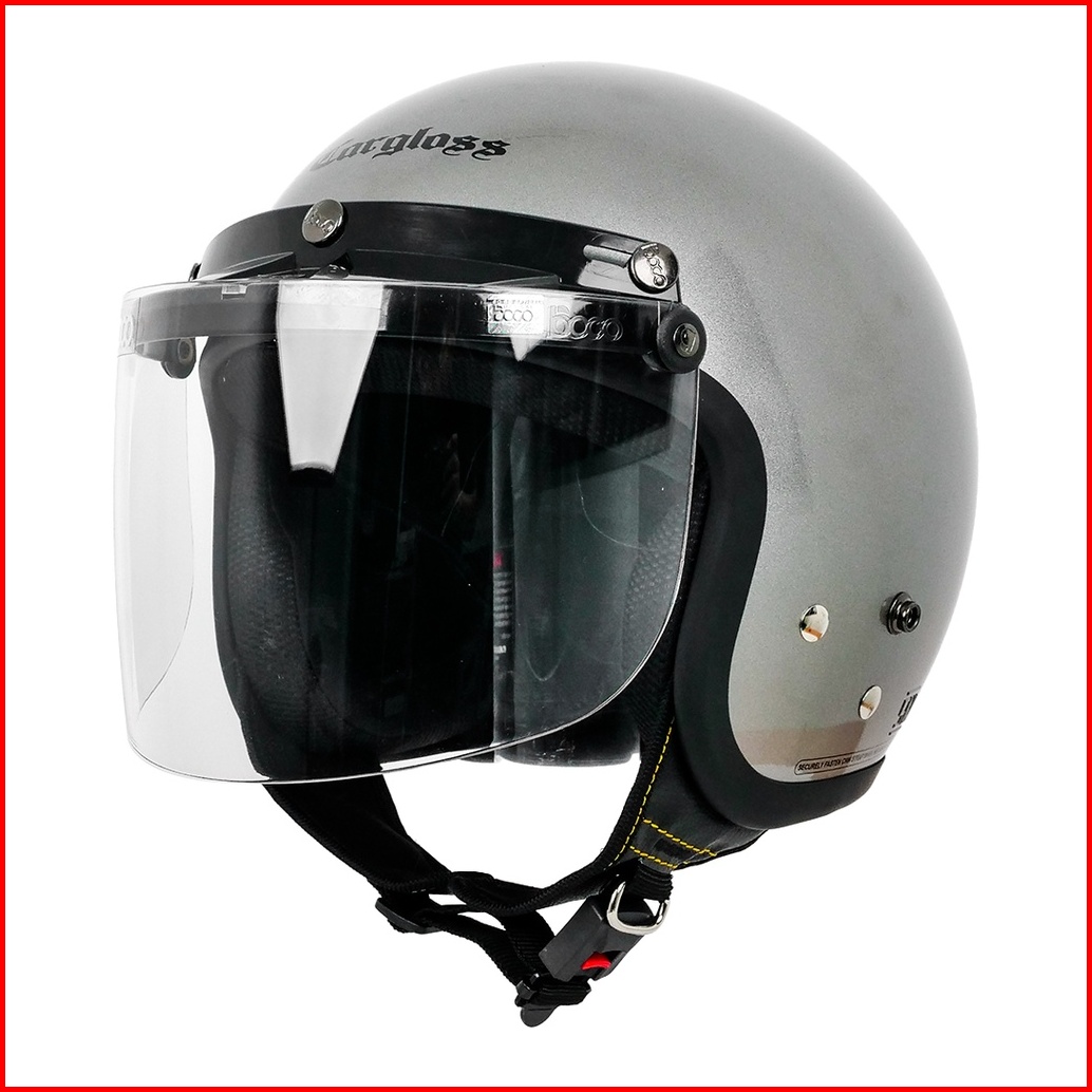 Cargloss Cfm Retro Visor Flat Clear Helm Half Face - Silver Met Gloss