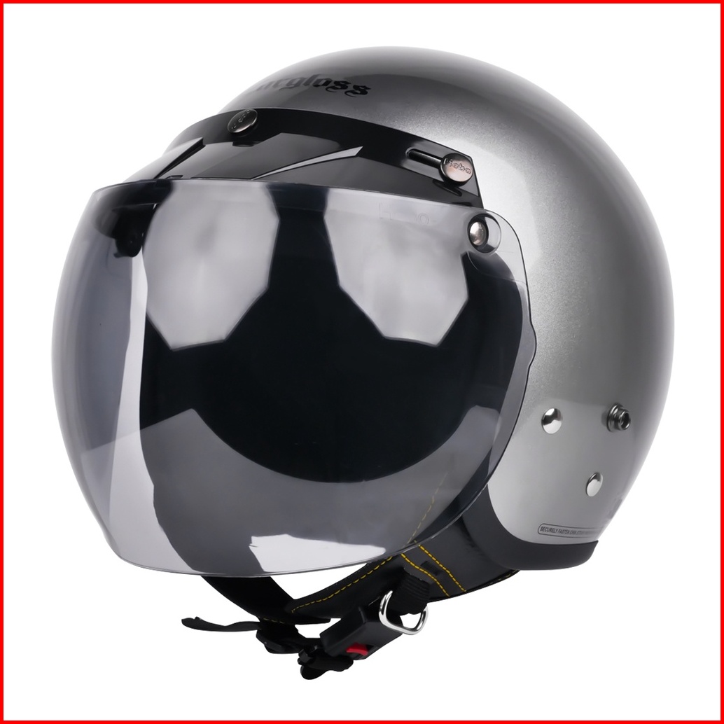 Cargloss Cfm Retro Visor Hebo Smoke Helm Half Face - Silver Met Glossy