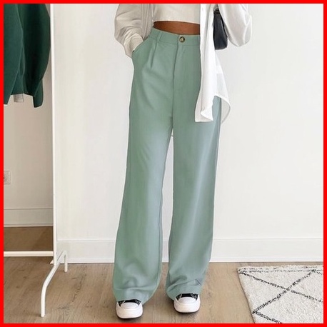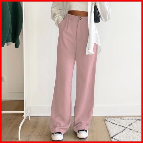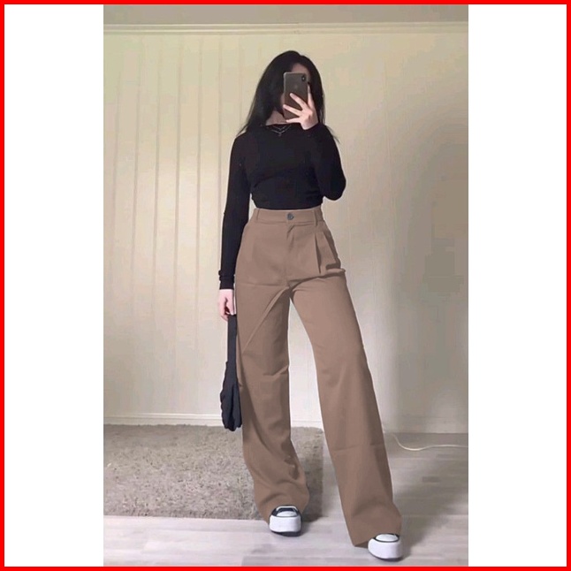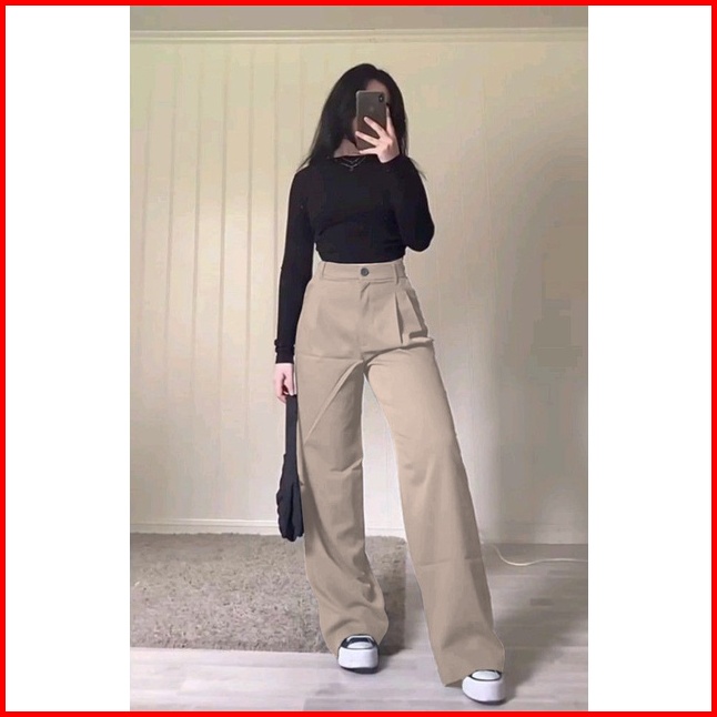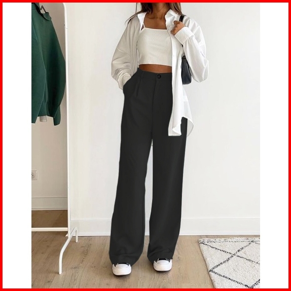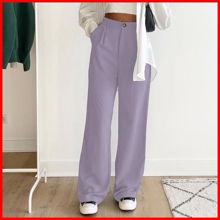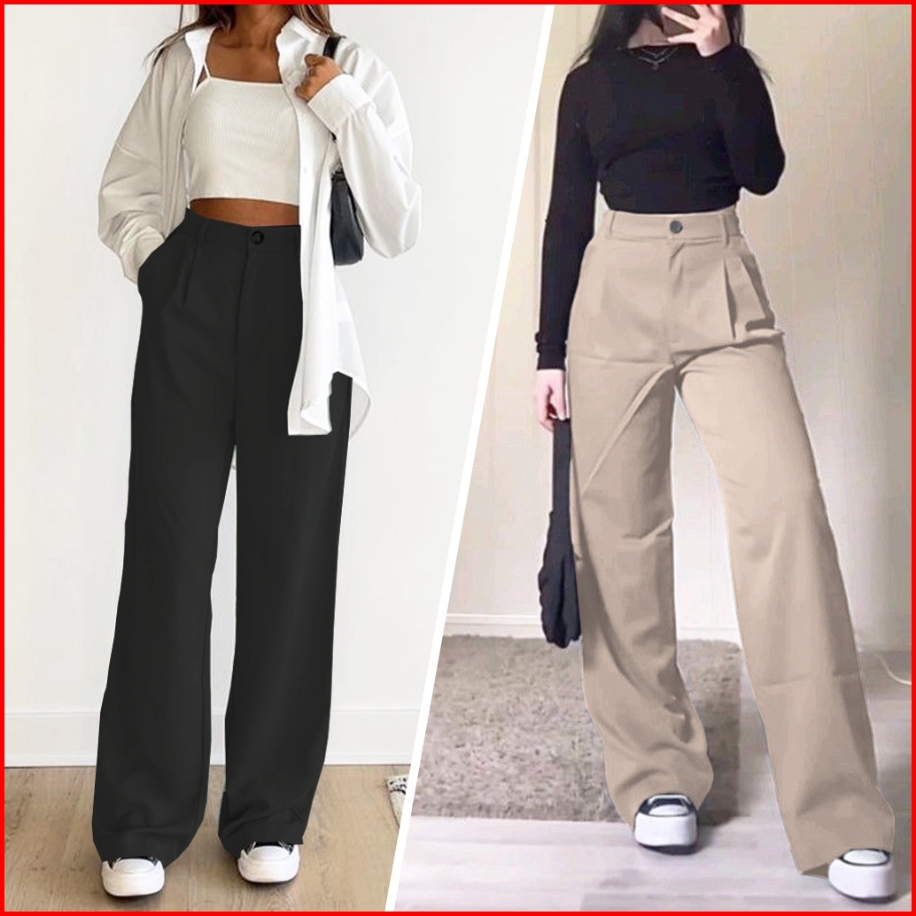 Loose Pants Highwaist Trousers Wanita - Celana Kulot Highwaist Cotton Matterial Kekinian