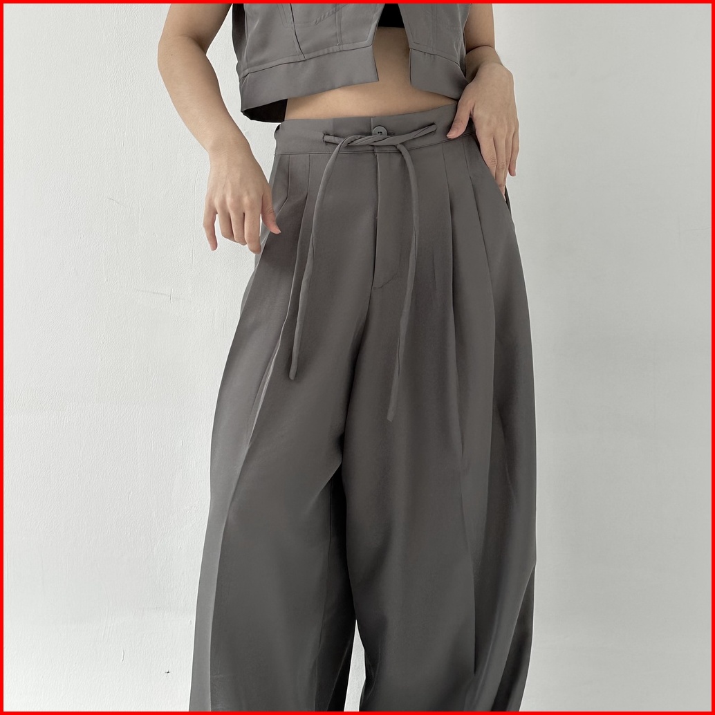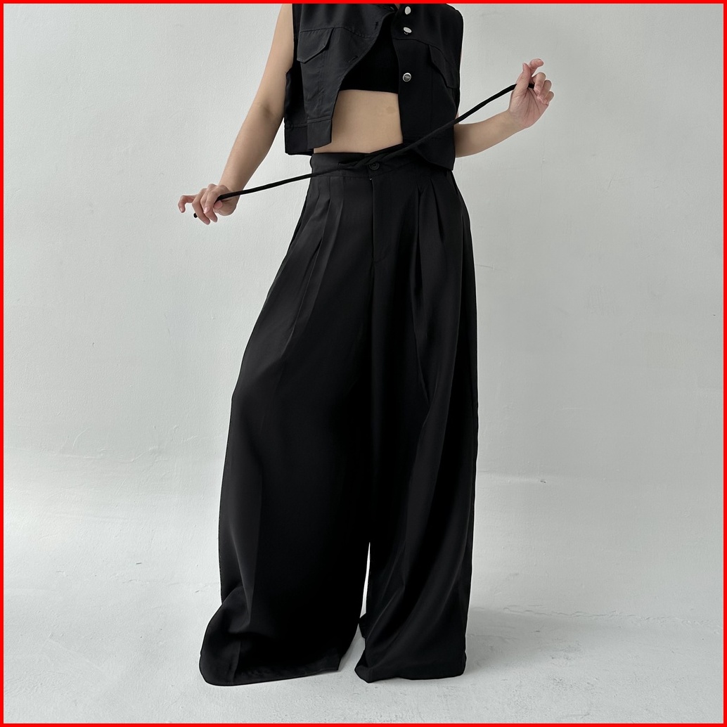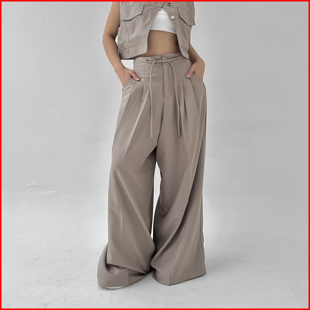 Bao Pants - Celana Panjang Straight Wide Leg Pants Two Tone Highwaist Wanita Trousers Lurus Baggy Kulot Highwaisted Posh
