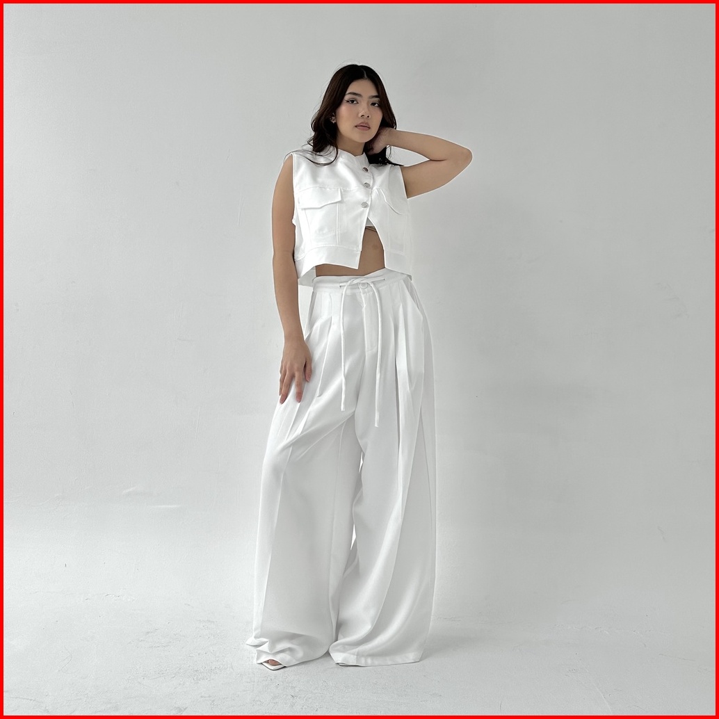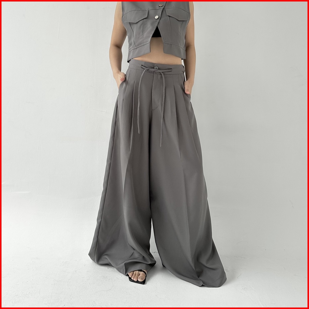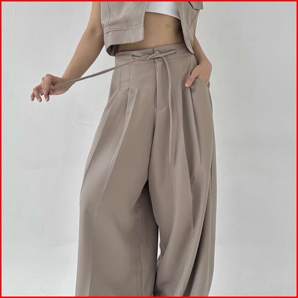 Bao Pants - Celana Panjang Straight Wide Leg Pants Two Tone Highwaist Wanita Trousers Lurus Baggy Kulot Highwaisted Posh