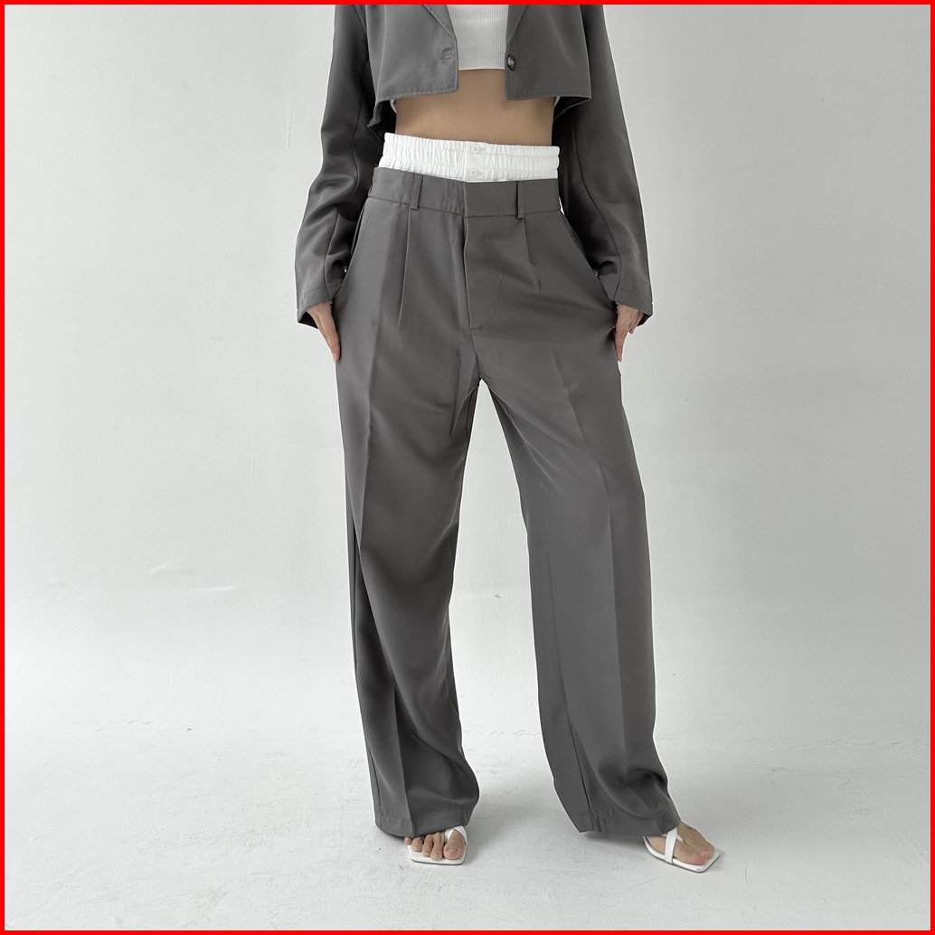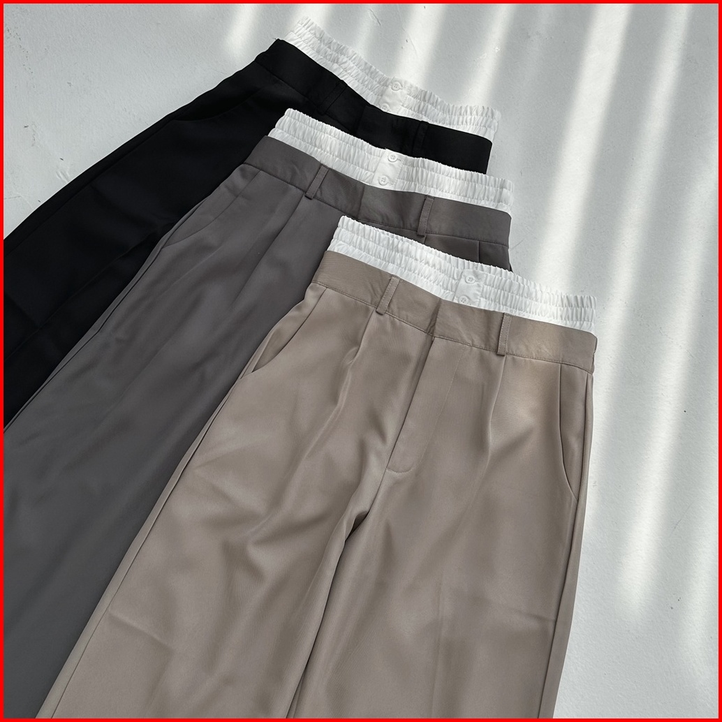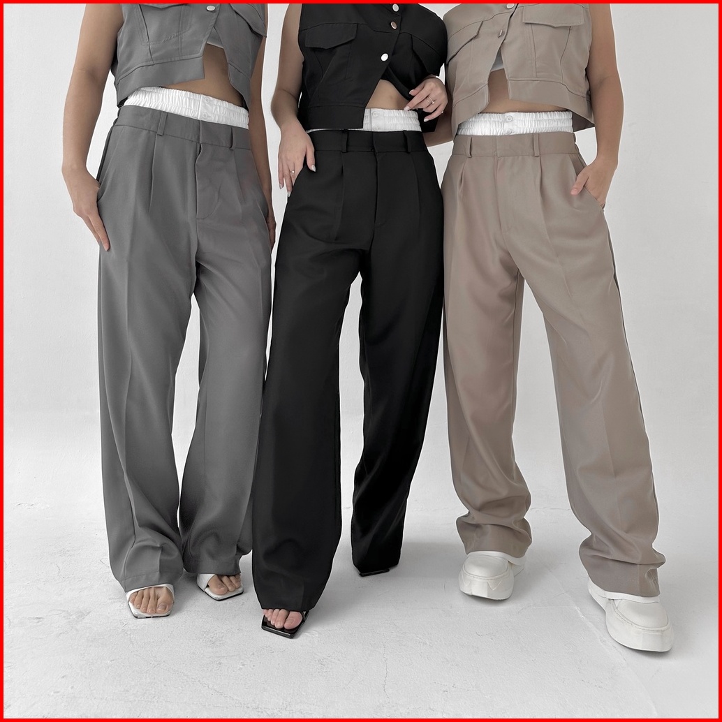 Rare Pants - Celana Panjang Straight Wide Leg Pants Two Tone Highwaist Wanita Trousers Lurus Baggy Kulot Highwaisted Pos