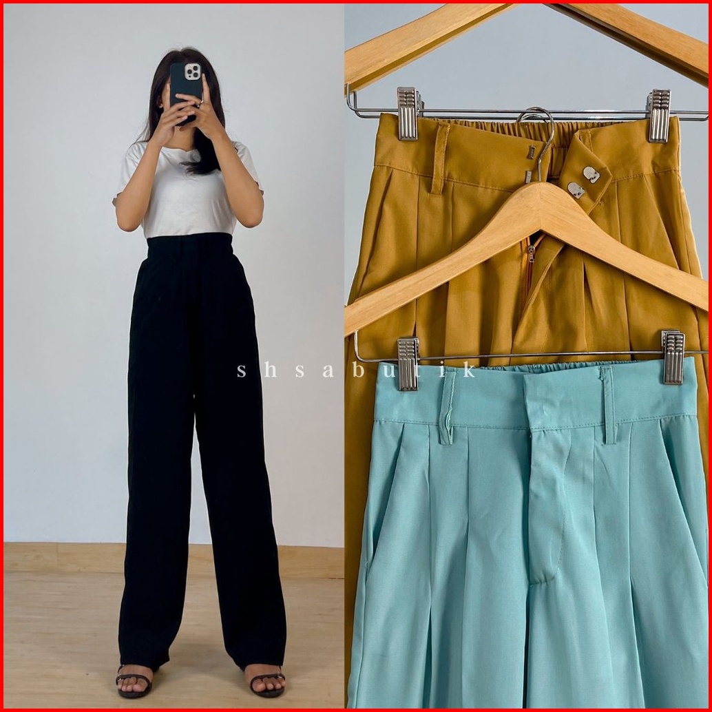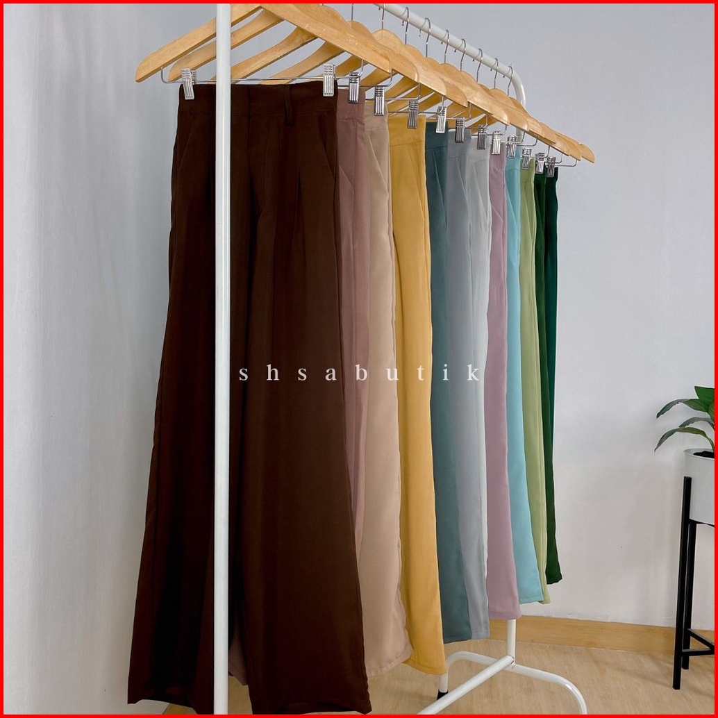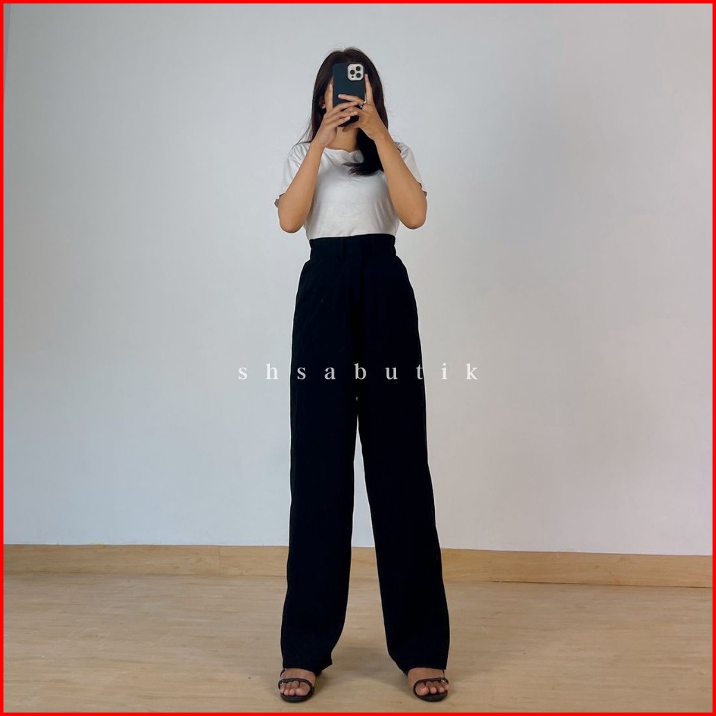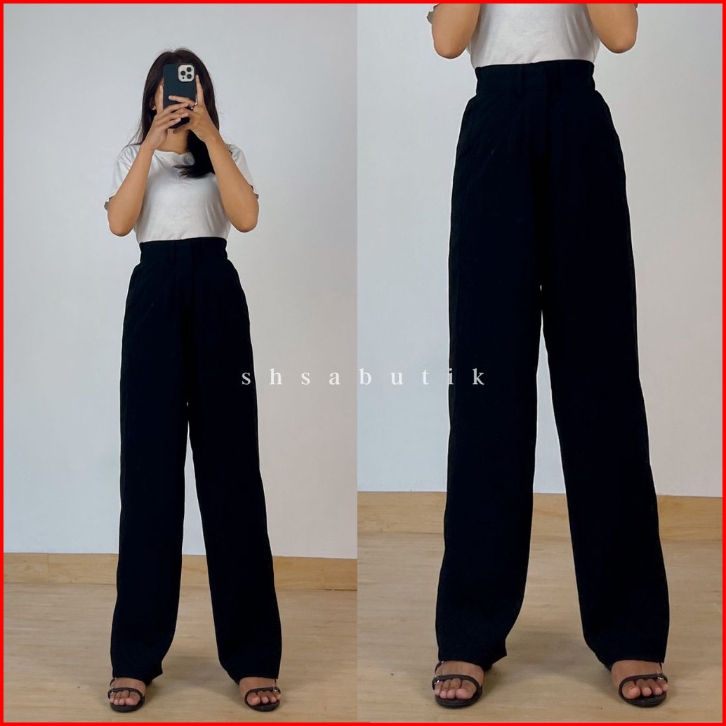 Loose Pants 332 Trousers Wanita Double Hak Celana Anti Kusut - Celana Kulot Wanita - Celana Kantor Formal Casual