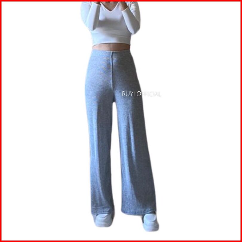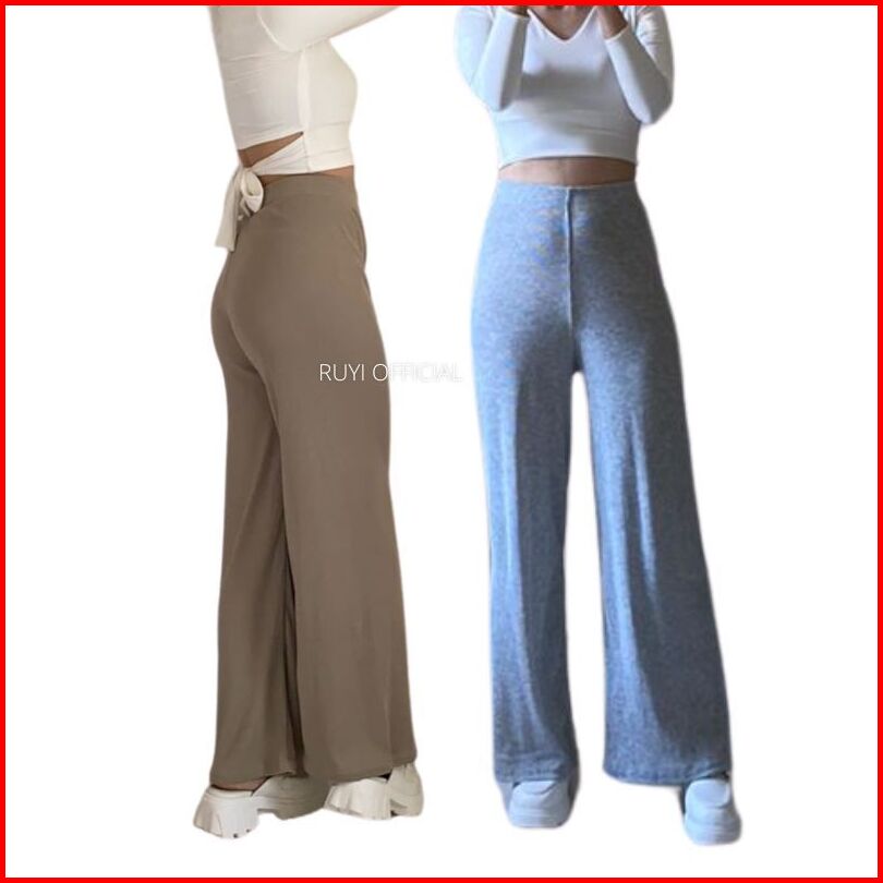 Ruyi - Hae Pants - Long Cullote Highwaist Pants - Celana Premium Knit - Kulot Wanita Fit To Xl