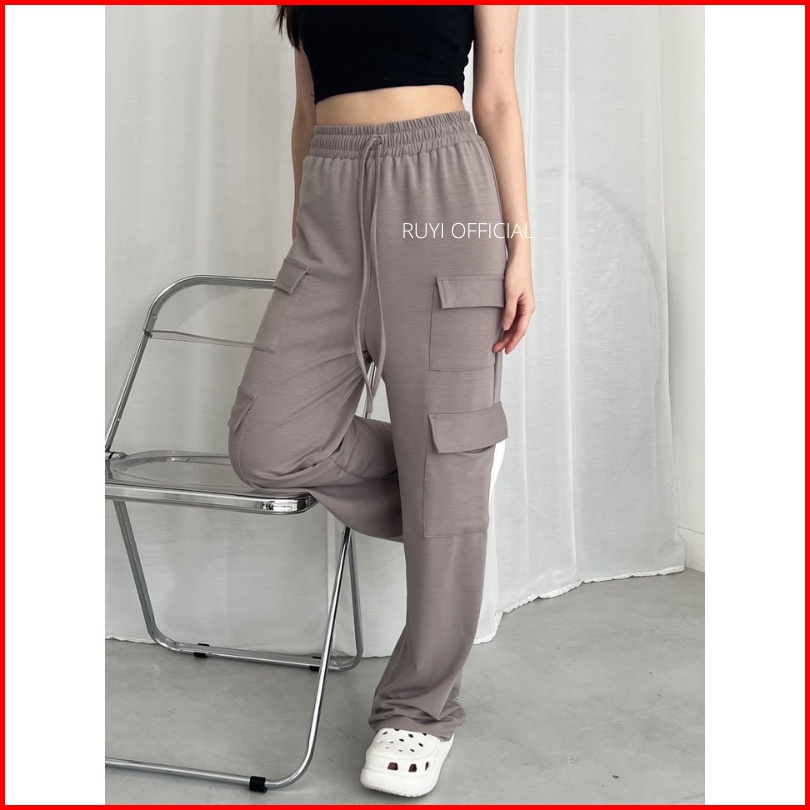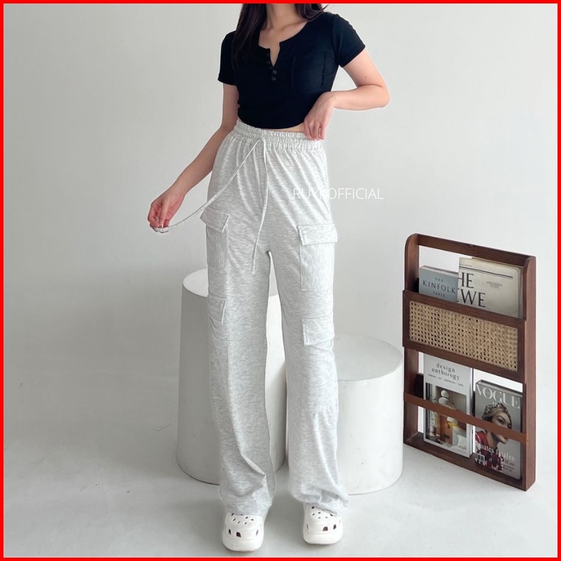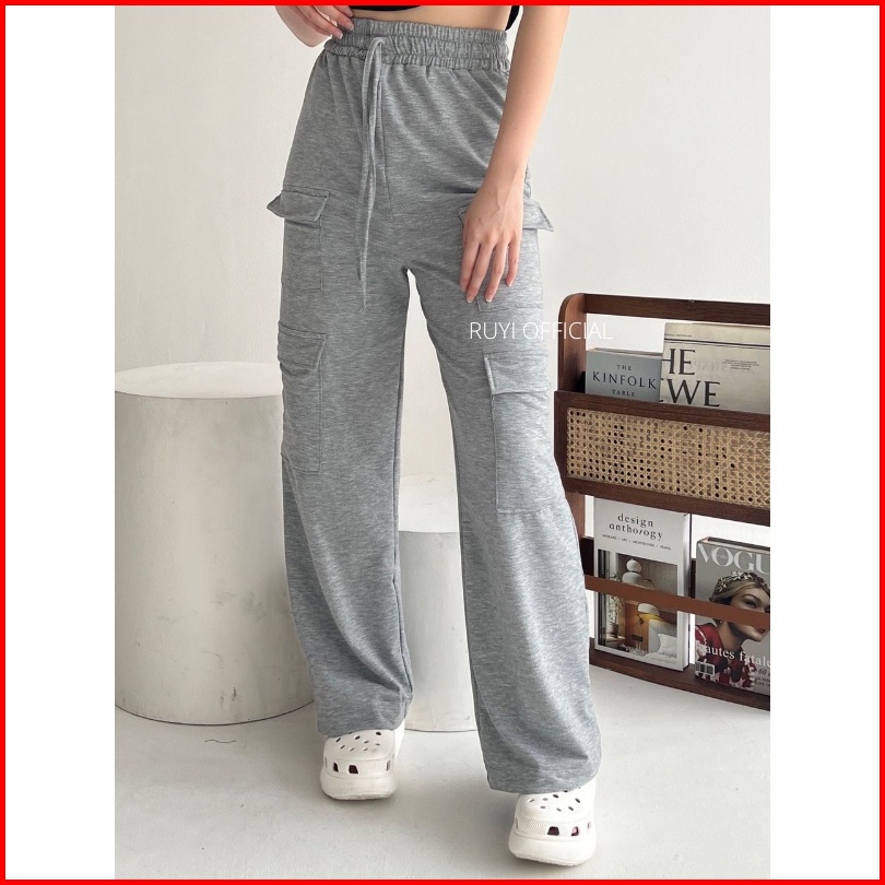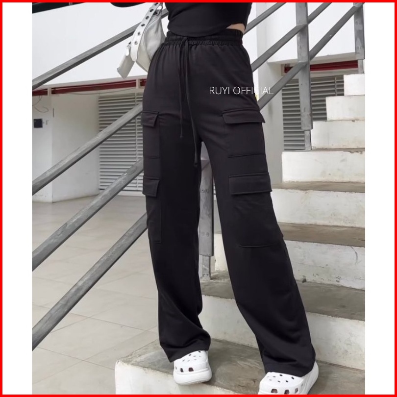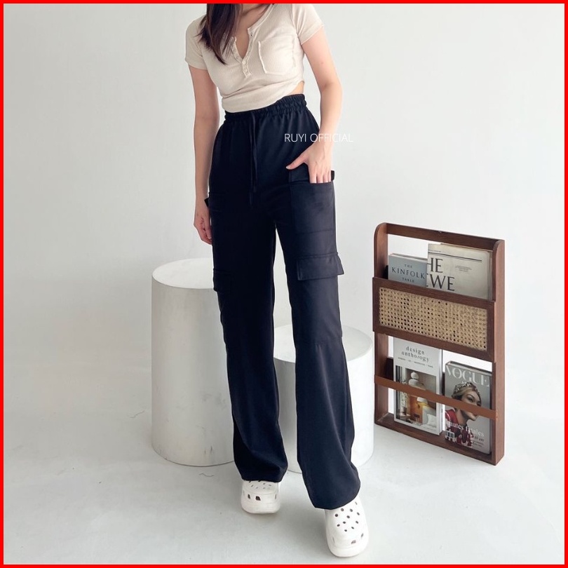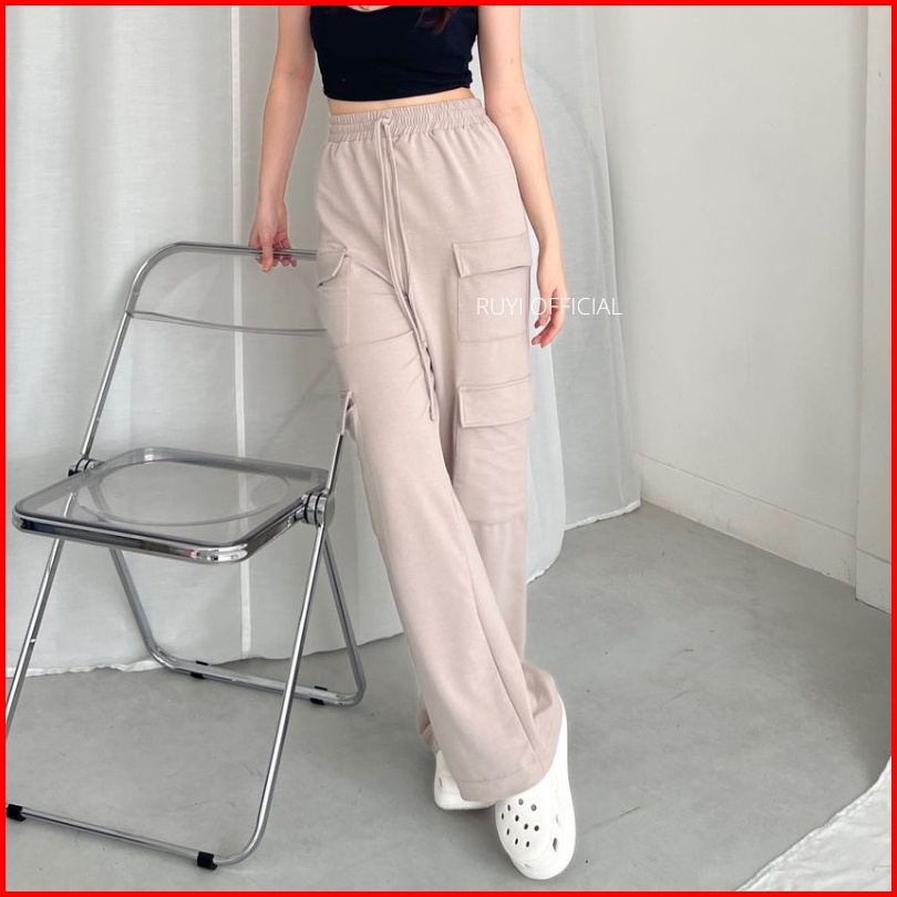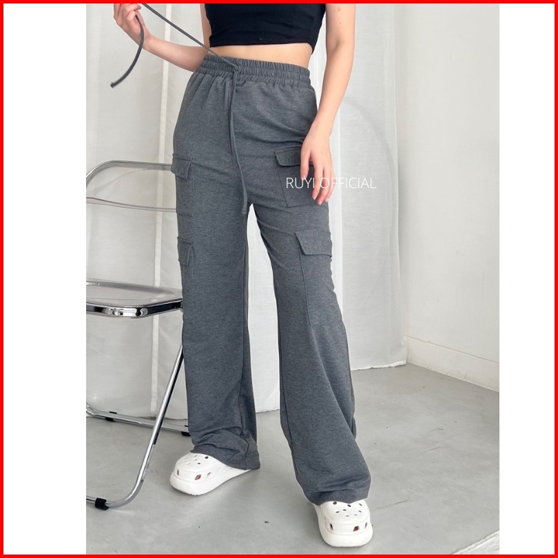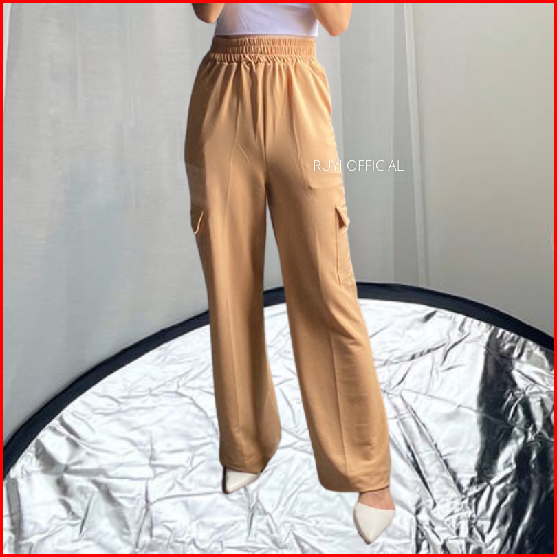 Ruyi - Fre Cargo Pants Kantong Dua Kulot Cargo Celana Kulot Celana Cargo Wanita