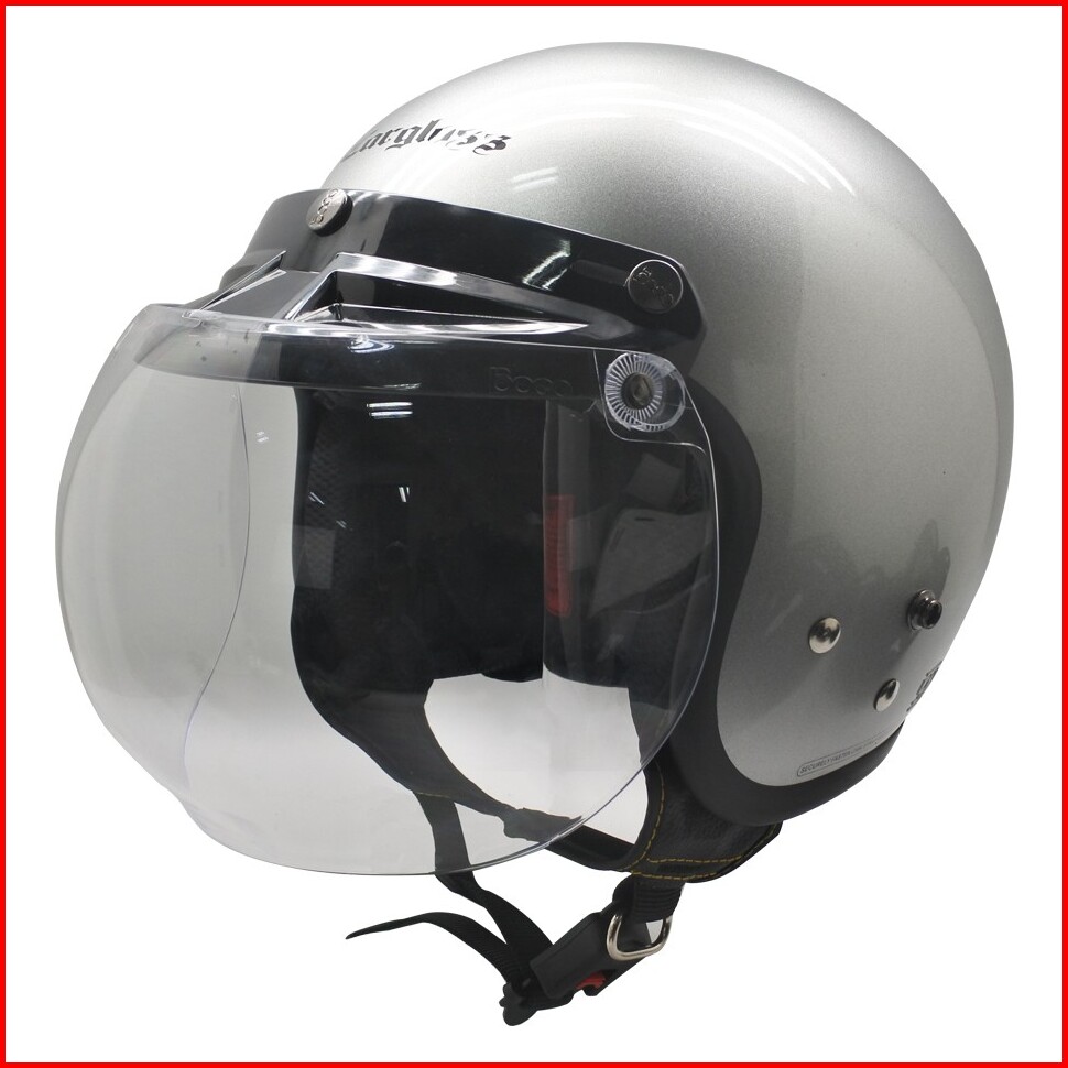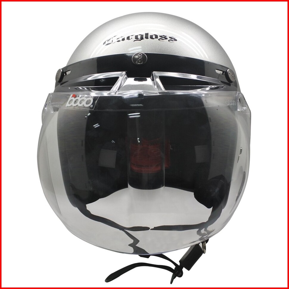 Cargloss Cfm Retro Visor Cembung Clear Helm Half Face - Silver Met Gloss