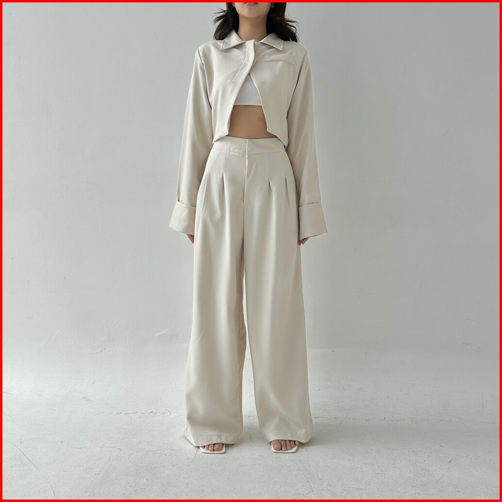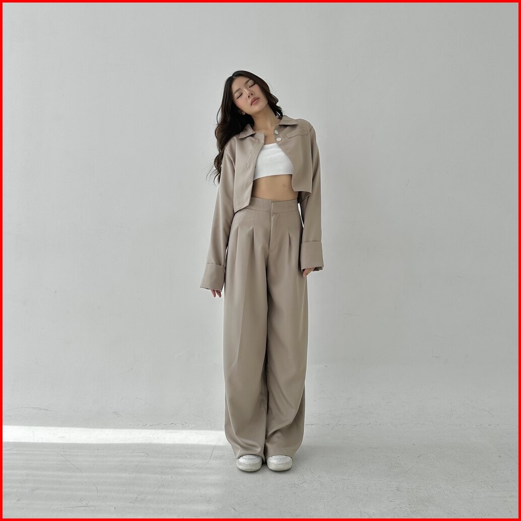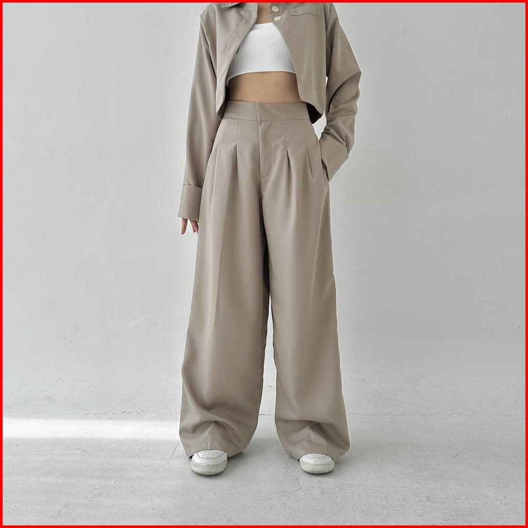 Abby Pants - Celana Panjang Wanita Wide Highwaist Pants Basic Korean Long Trousers Murah Posha