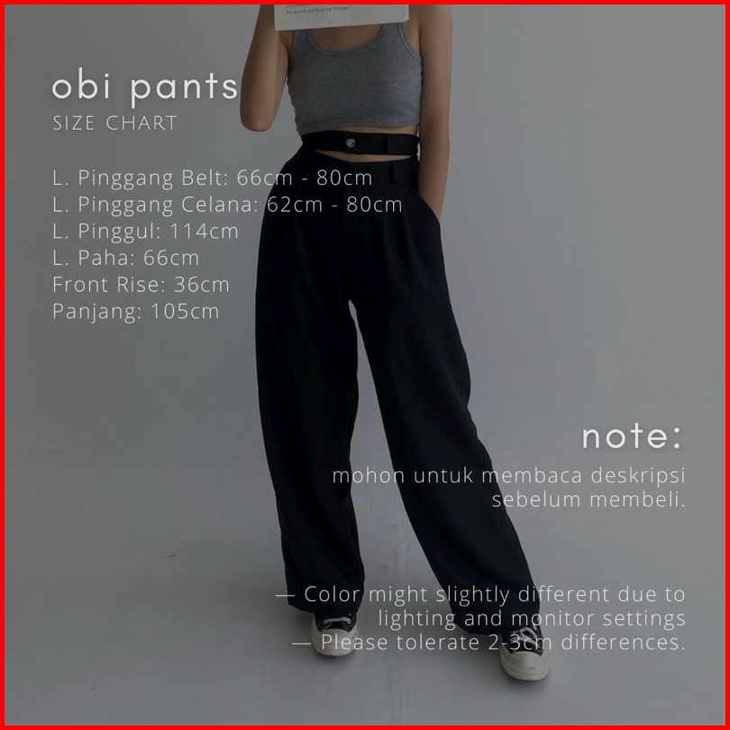 Obi Pants - Posha Celana Panjang Highwaist Trousers Korean Basic Long Super Highwaisted Pants