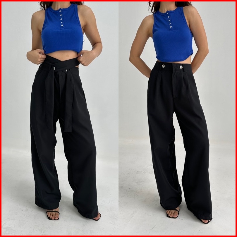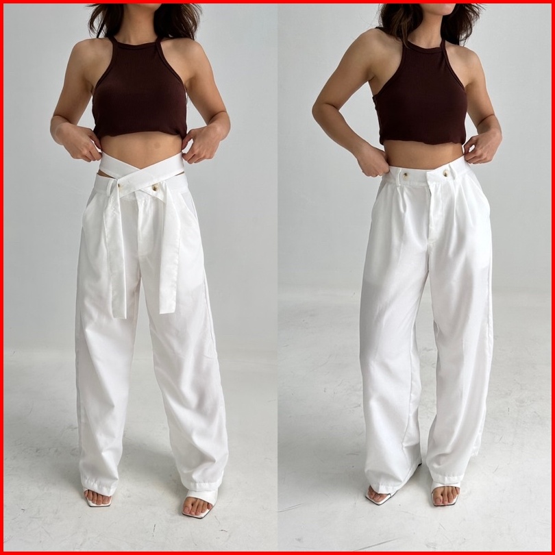 Nuo Pants - Posha Celana Panjang Highwaist Murah Wanita Trousers Celana Kulot Highwaisted Pants