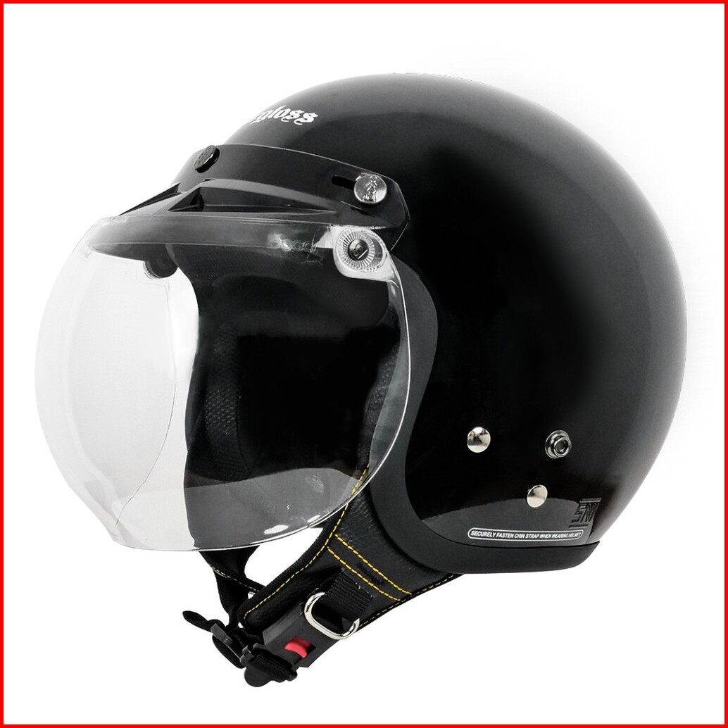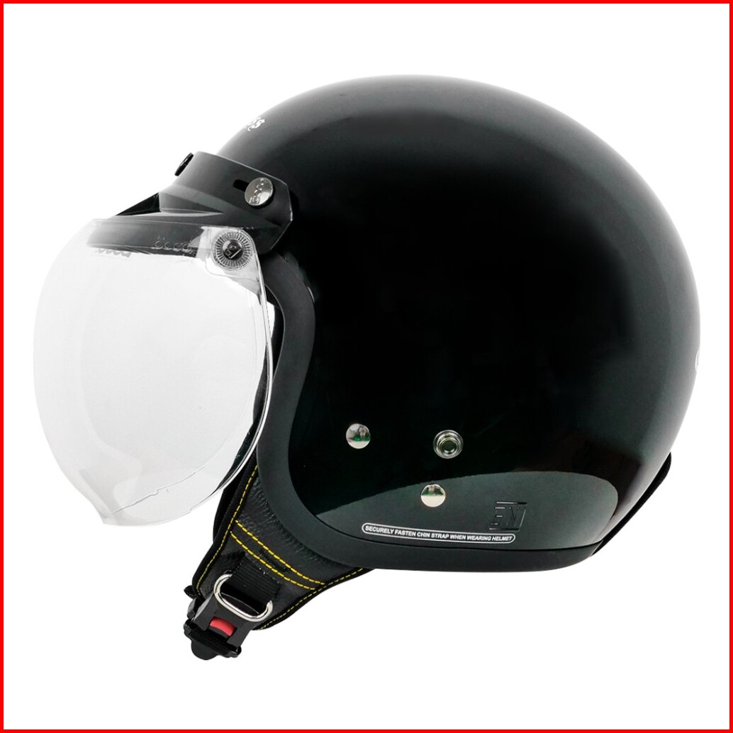 Cargloss Cfm Retro Visor Cembung Clear Helm Half Face - Deep Black
