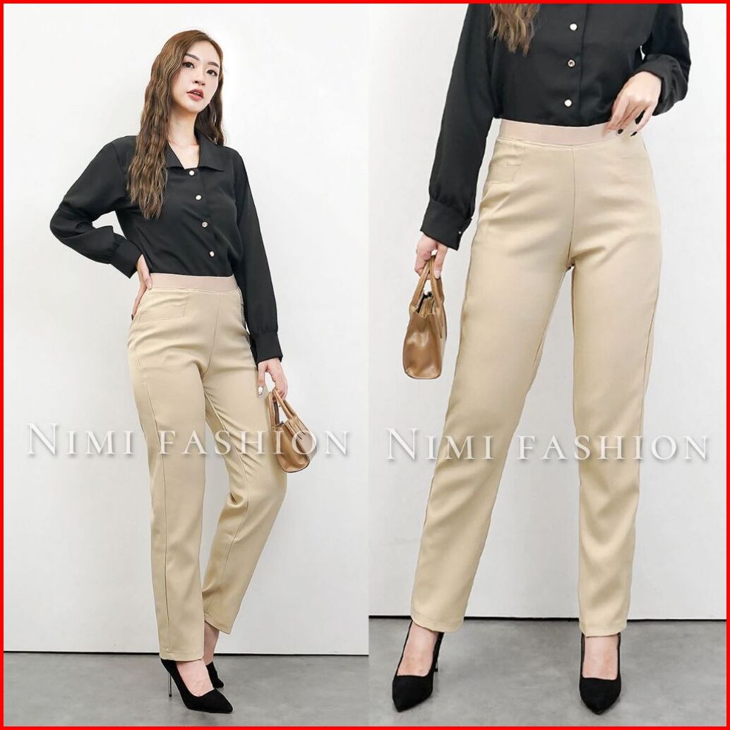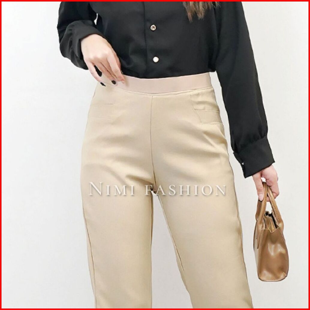 Nimi - Celana Kerja Kantor Wanita Formal Bahan Stretch Premium Pinggang Full Karet