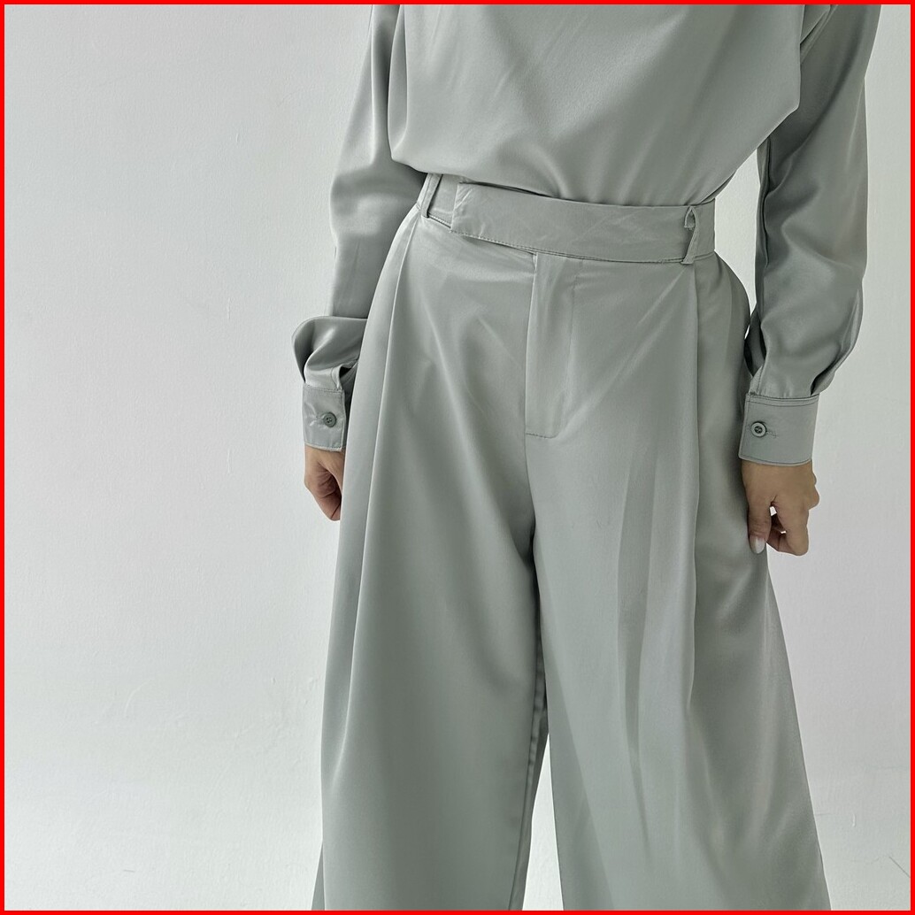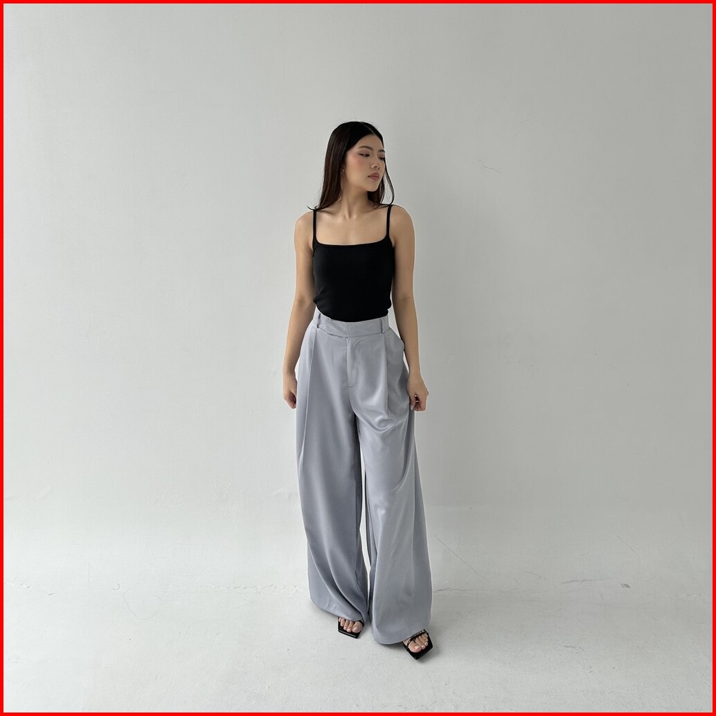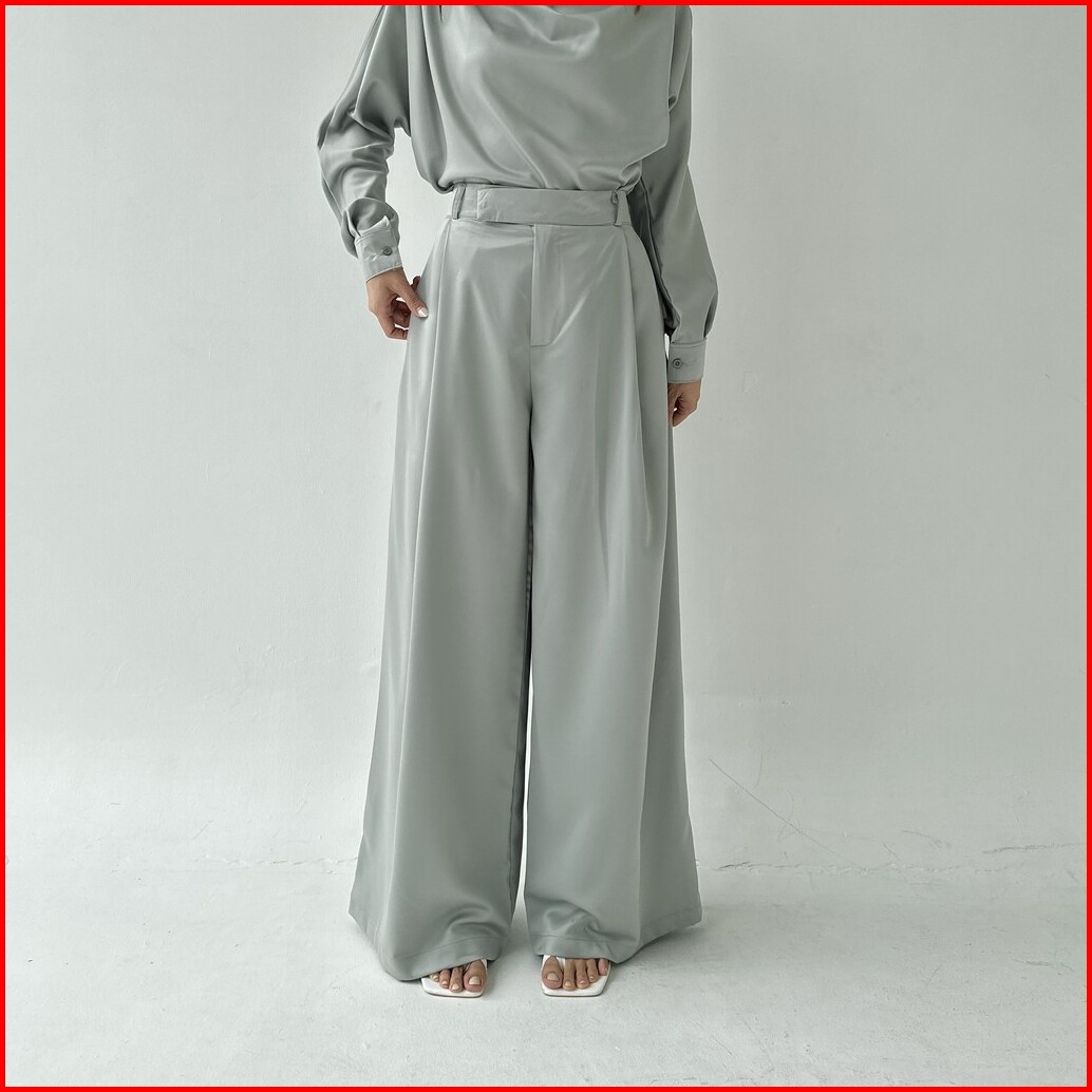 Gaia Pants - Celana Panjang Wanita Wide Highwaist Pants Basic Straight Baggy Korean Long Satin Trousers Murah Posha