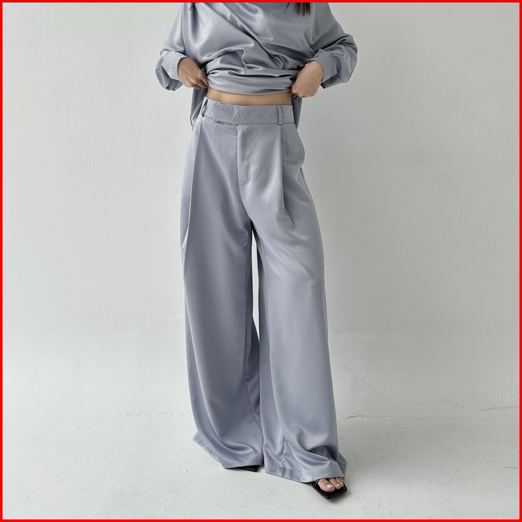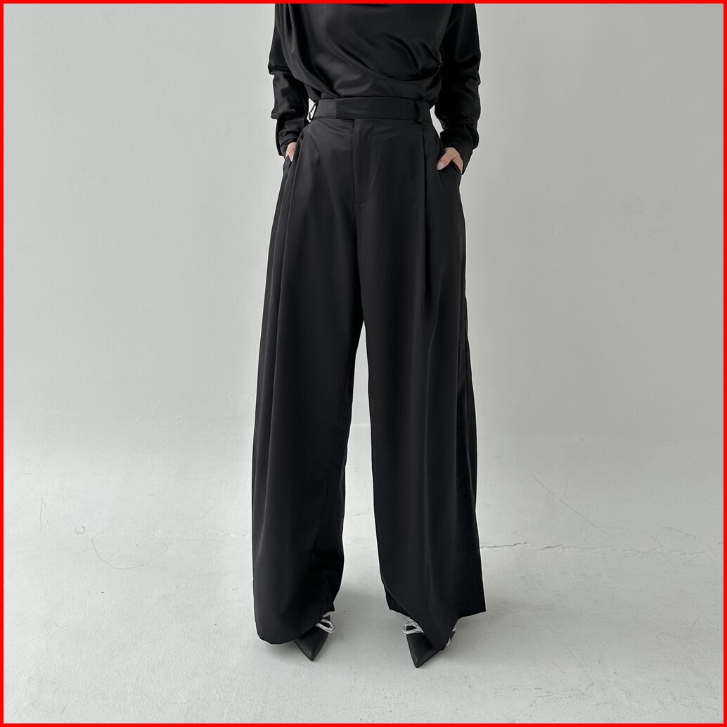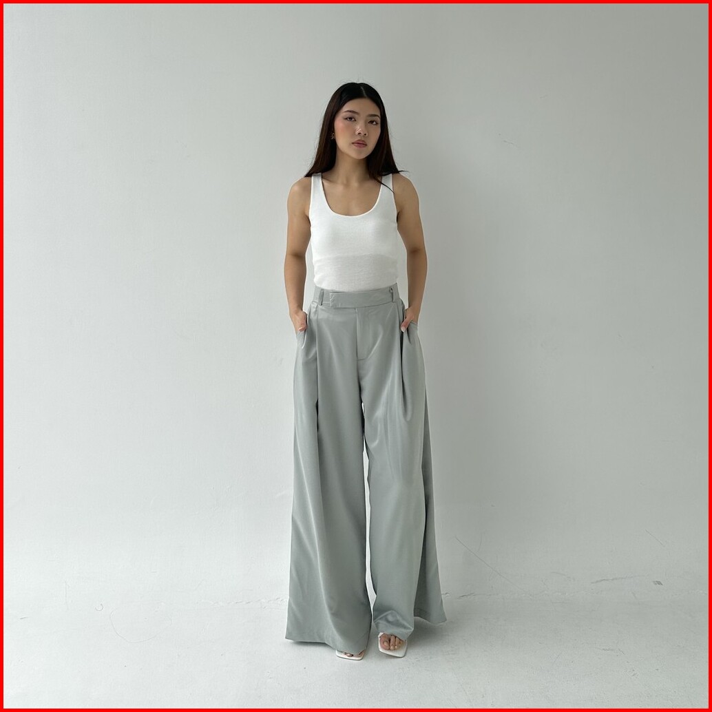 Gaia Pants - Celana Panjang Wanita Wide Highwaist Pants Basic Straight Baggy Korean Long Satin Trousers Murah Posha