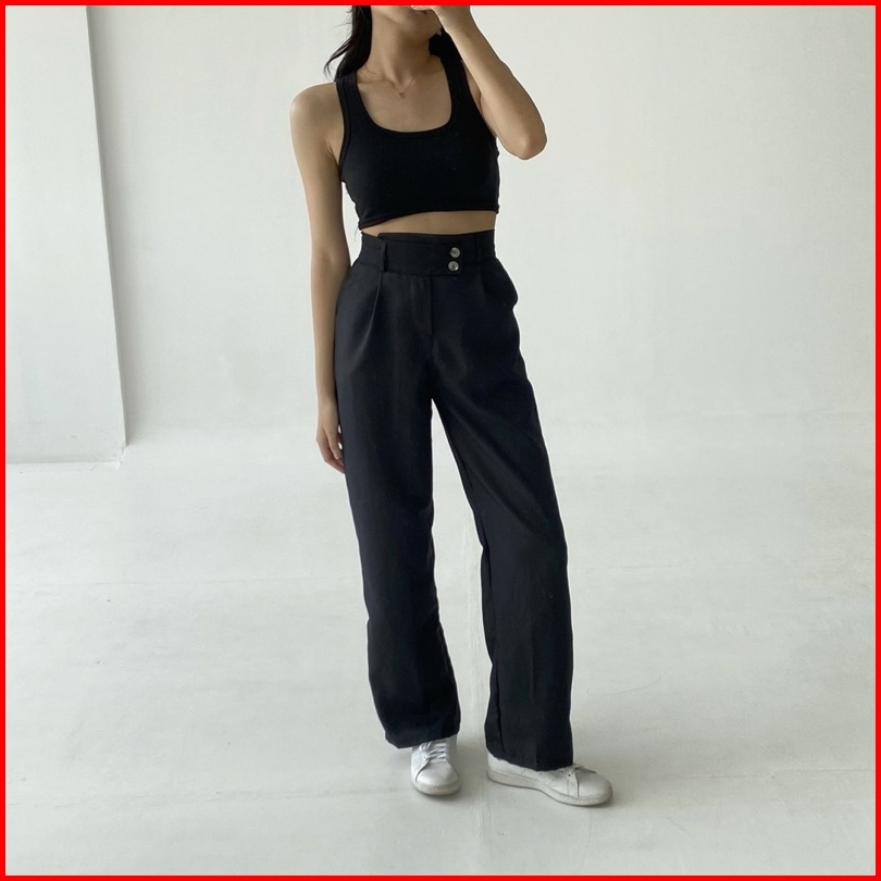 Kuma Pants - Posha Celana Panjang Highwaist Trousers Korean Basic Long Highwaisted Pants